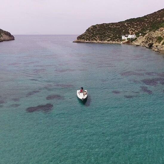 After Chryssopigi, we continue east and visit the bays of Faros and the three beaches of Fassolou, Faros and Glyfo. We will see the old mines and can swim at each of these beaches. Then we head straight to Kastro (the castle), the first capital of Sifnos which was first inhabited in prehistoric times. Kastro is built on a rock and the construction resembles that of a fortress, hence the name. As we leave Kastro and the beach Seralia, we head north and reach the bay of Dialiskari, with the monastery of Poulati right above it. We can swim in the crystal clear waters and visit the monastery before heading back.