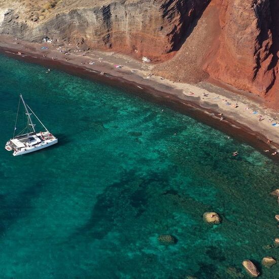 - Sail along Santorini’s stunning coastline on a luxurious private catamaran