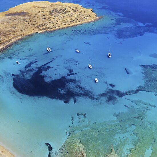 Wir fahren dann in Richtung Nordosten und erreichen die Kofounisia-Inseln, ein Paar wunderschöner kleiner Inseln. Wir haben die Wahl, Nero, einen der südlichen Strände von Kato (Lower) Koufonisi, zu besuchen, oder weiter nach Osten zur Chora in Pano (Upper) Koufonisi zu fahren und dort zu Mittag zu essen. Dann geht es weiter in Richtung Osten zu den besten Stränden, die Koufonisia berühmt gemacht haben: Italida (Platia Pounta) und Italidoula sowie Devil's Eye (Piscina), bei dem es sich im Wesentlichen um eine Reihe von Felsformationen handelt, die kleine, natürliche Pools bilden. Unser letzter Halt ist das berühmte Pori!