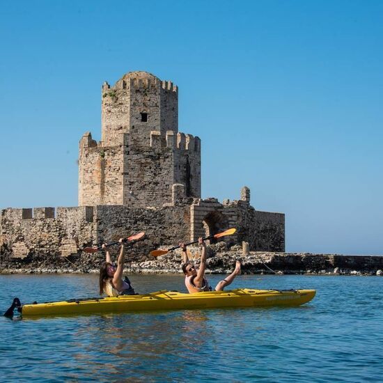 Methoni war das "Auge" Venedigs im Mittelmeer und ein wichtiges Handels- und Marinezentrum für die Venezianer im Mittelalter. Die Burg von Methoni ist die beeindruckendste Festung auf dem Peloponnes, die in einen Felsen gebaut wurde, der ins Meer ragt und durch einen künstlichen Graben vom Festland getrennt ist. Gegenüber von Methoni liegt die üppig bewachsene Insel Sapienza, die in das Natura 2000-Netzwerk integriert ist und seltene Tier- und Pflanzenarten beherbergt. Vor ihren Küsten liegen mehrere Schiffswracks, die mit Taucherbrille und Schnorchel noch zu sehen sind. Seekajakfahren ist hier selbst für erfahrene Paddler manchmal eine Herausforderung. Mit dem Seekajak Methoni können Sie die Küsten der Gegend erkunden!