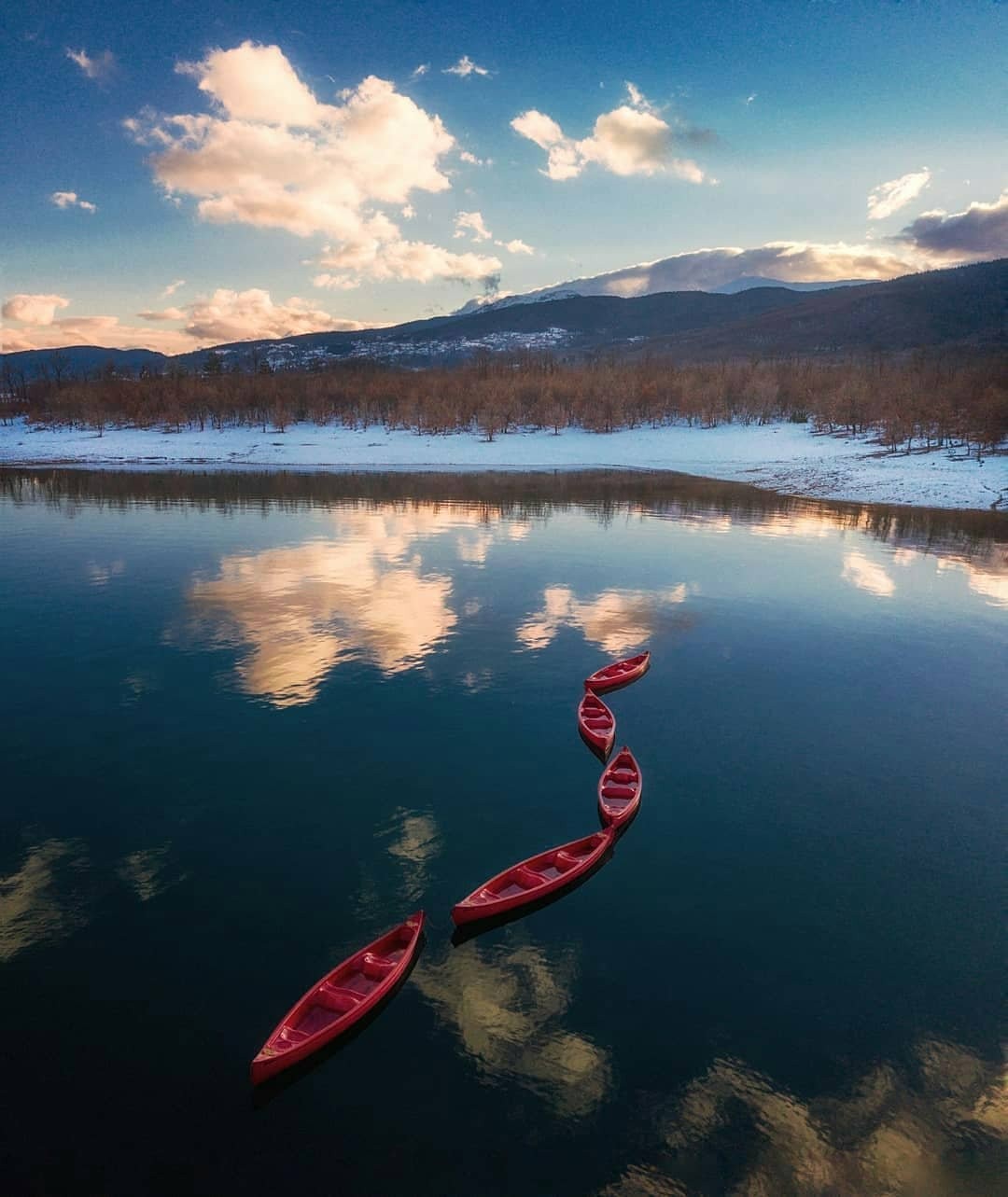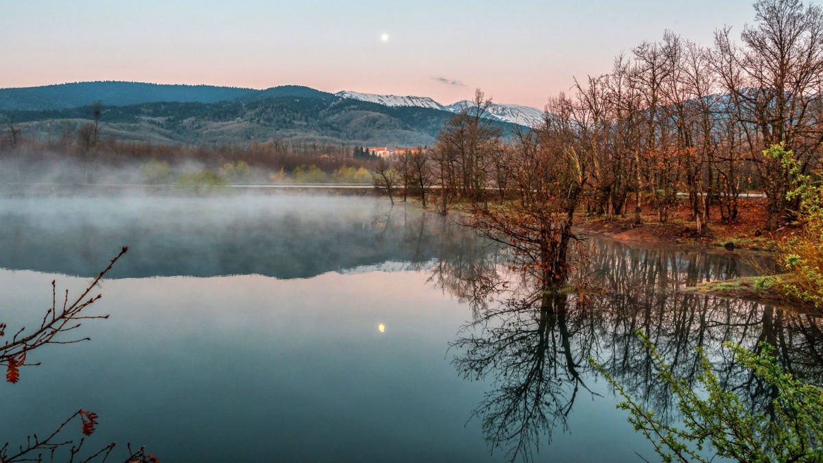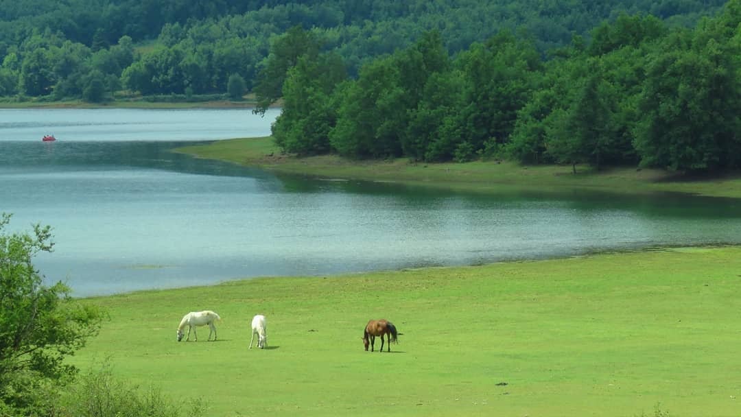 Ein künstlicher See in perfekter Harmonie mit der Natur, umgeben von malerischen Dörfern, Tannenwäldern und dem imposanten Agrafa-Gebirge