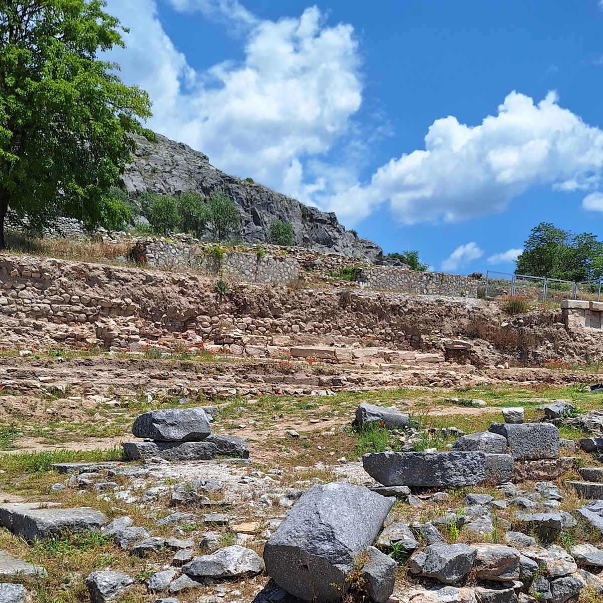 - Zwei quadratische und ein polygonaler Turm sind in den Mauern des äußeren Bereichs der Akropolis zu sehen, während sich im inneren Bereich ein Freilufttheater für kulturelle Veranstaltungen und ein Café für Besucher befinden.
