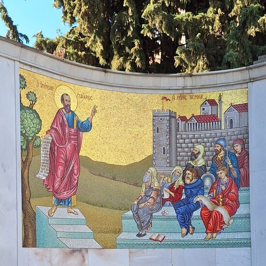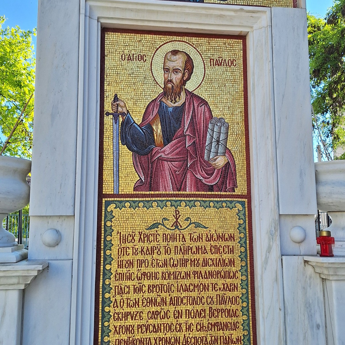 Die Heilige Kirche des Apostels Paulus in Agios Pavlos, Thessaloniki, Griechenland, ist ein bedeutendes geistiges Wahrzeichen, das dem Heiligen Paulus gewidmet ist. Thessaloniki ist eine Stadt, die eng mit den Missionsreisen des Apostels verbunden ist, da er dort predigte und eine christliche Gemeinde gründete, die in den Briefen an die Thessalonicher im Neuen Testament erwähnt wird.