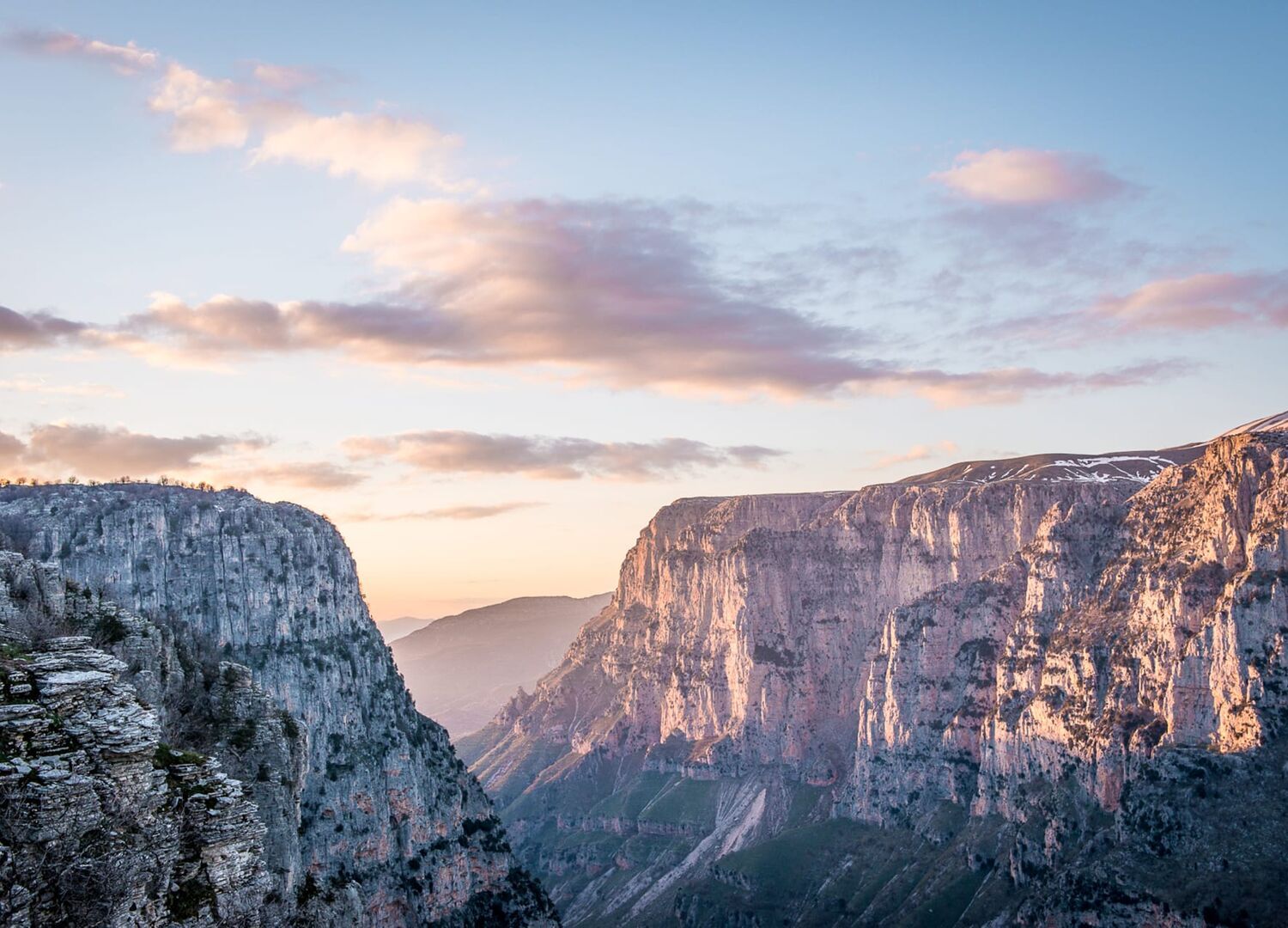 Ein weiteres Wahrzeichen von Zagori (und Epirus im Allgemeinen) ist eine Wanderung durch die Vikos-Schlucht. Von mehreren Dörfern in Zagori aus hast du einen atemberaubenden Blick auf die Schlucht. Besonders beeindruckend ist der Aussichtspunkt Oxya in Monodendri (wo die Wanderungen in der Schlucht normalerweise beginnen) sowie in Vikos (von wo aus du in 30 Minuten zu den Voidomatis-Quellen absteigen kannst) und Vradeto (etwa 30 Minuten Fußweg zum Aussichtspunkt Beloi).