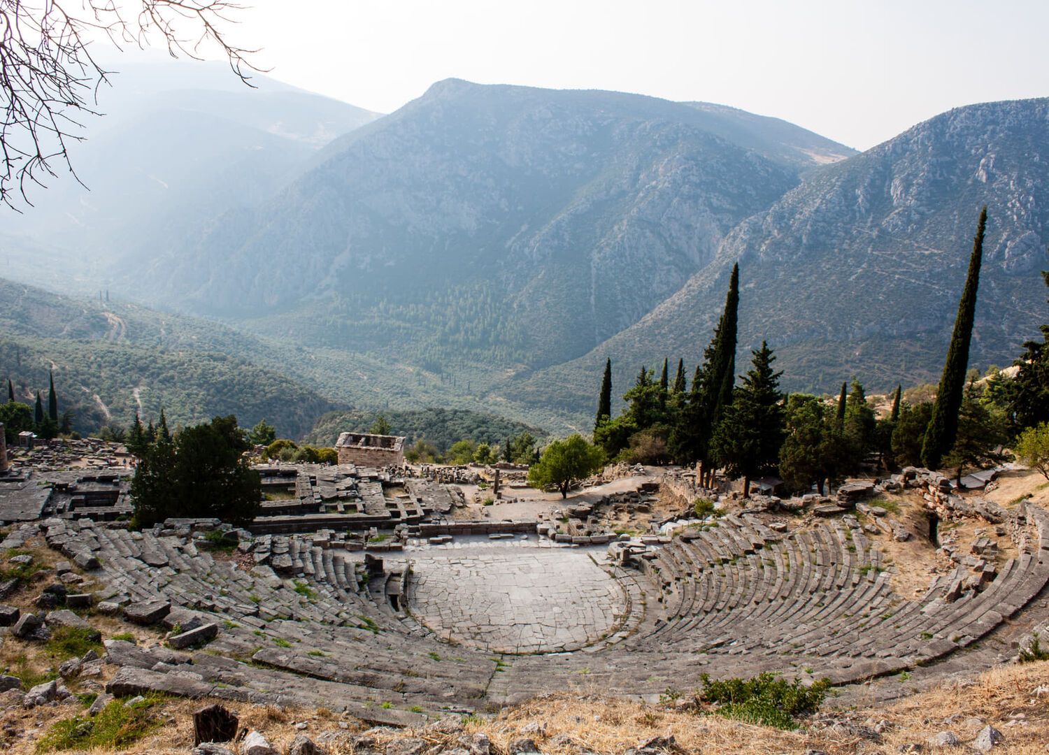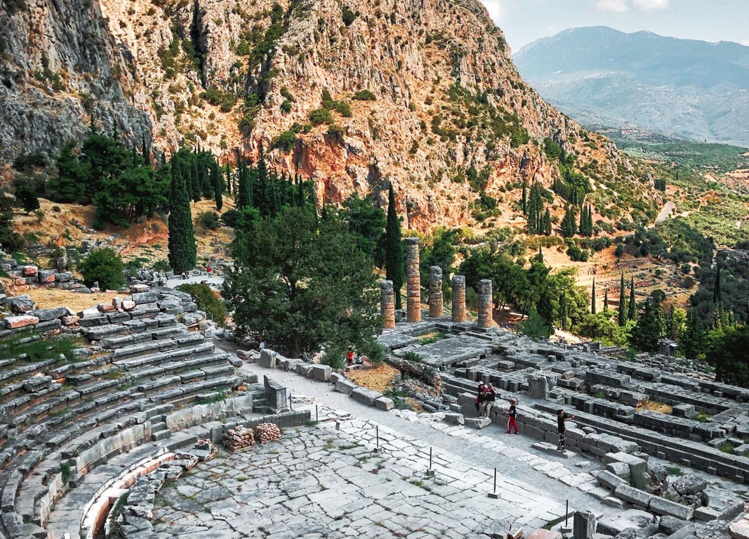 Delphi ist eine der größten archäologischen Stätten Griechenlands und war in der antiken griechischen Welt ein Symbol der Einheit. Dem Mythos nach trafen sich hier die beiden Adler, die Zeus freigelassen hatte, um den Mittelpunkt der Welt zu finden, und wurde daher als Omphalos (oder Nabel) der Welt bezeichnet. Es war auch ein Heiligtum von unvergleichlicher Schönheit, erbaut an den Hängen des Berges Parnassos und mit Blick auf das Pleistos-Tal bis hin zum Meer. Es gab keinen passenderen Ort, um den Sonnengott Apollo zu verehren, der der griechischen Mythologie zufolge an dieser Stelle die Drachenschlange Python tötete und so die Kontrolle über das Orakel erlangte. Vom König bis zum einfachen Volk kamen alle, um die Worte Apollos zu hören, die von der Priesterin Pythia (benannt nach Python) im legendären Orakel von Delphi vorgetragen wurden.