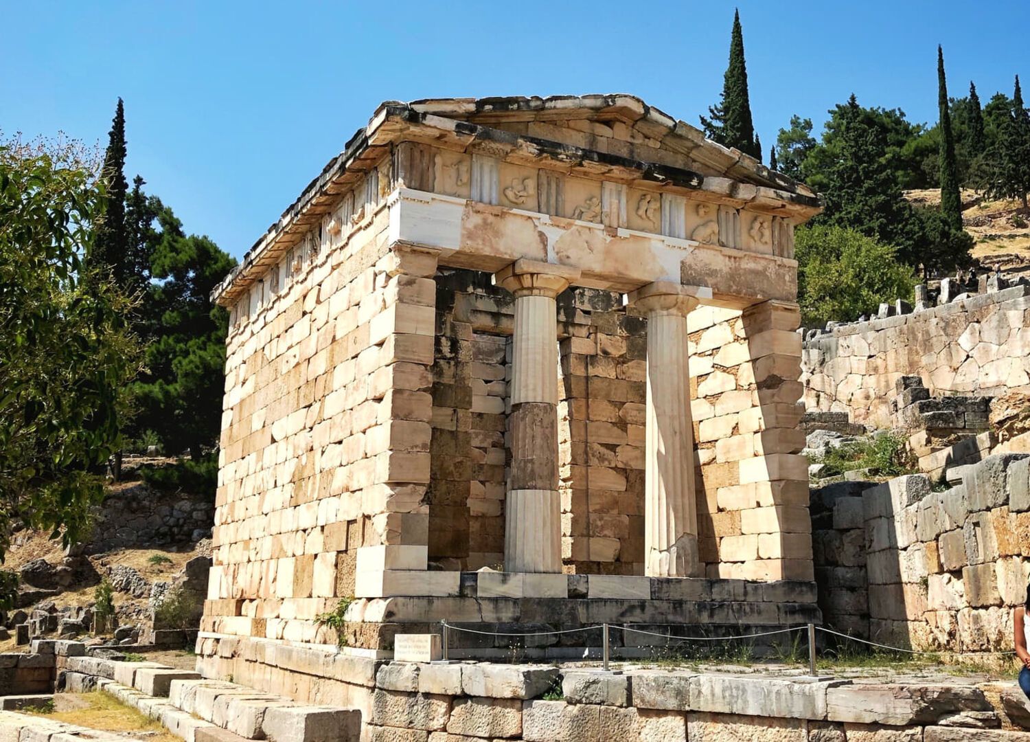 Delphi erreichte den Höhepunkt seines religiösen und politischen Einflusses im 6. Jh. v. Chr., blieb aber bis in die römische Zeit hinein von Bedeutung. Die Schatzkammern (die Athener Schatzkammer ist die am besten erhaltene), die die schmalen Straßen der Stadt zierten, dienten der Präsentation von Schätzen. Zu den archäologischen Wundern gehören der Apollon-Tempel, das antike Theater, die Kastalische Quelle und der Tholos der Athena Pronaia (die hier ebenfalls verehrt wurde). Im Stadion fanden alle vier Jahre die Pythischen Spiele statt, die nach den Olympischen Spielen die zweitwichtigste Veranstaltung waren. Die Sieger erhielten einen Lorbeerkranz, der aus der heiligen Pflanze des Apollo hergestellt wurde.