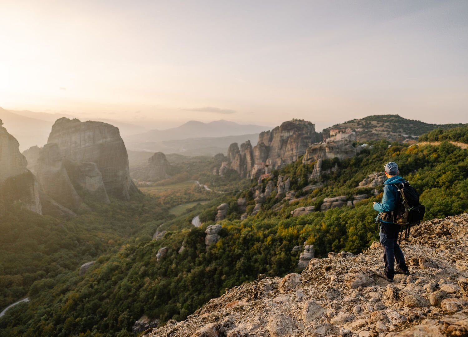 Um den Titel der eindrucksvollsten UNESCO-Weltkulturerbestätte in Griechenland gibt es keine Konkurrenz. Die Meteora-Felsen und die aktiven oder verlassenen Klöster, die sich scheinbar unbezwingbar auf ihren Gipfeln befinden, sind außergewöhnliche Leistungen von Natur und Mensch. Die säulenförmigen Sandsteinfelsen wurden von prähistorischen Flüssen geformt und zogen im 10. und 11. Jahrhundert Asketen an, die in den natürlichen Vertiefungen der Felsen lebten und beteten. Mit Hilfe von Gerüsten, die durch in die Felslöcher geklemmte Balken gestützt wurden, und später mit Hilfe von Netzen und Strickleitern fanden die Eremiten nach und nach weiter oben in den Felsen Zuflucht.
