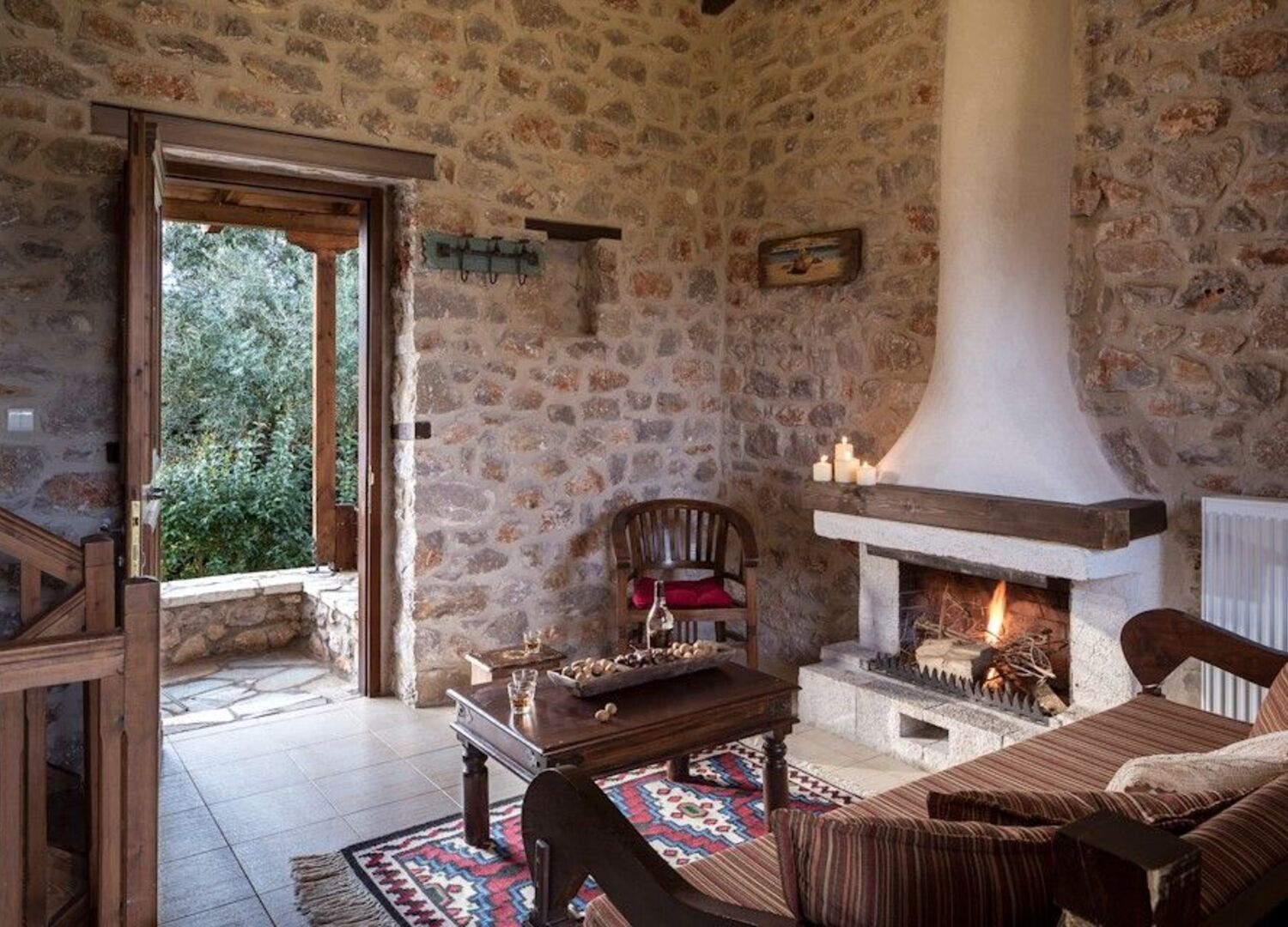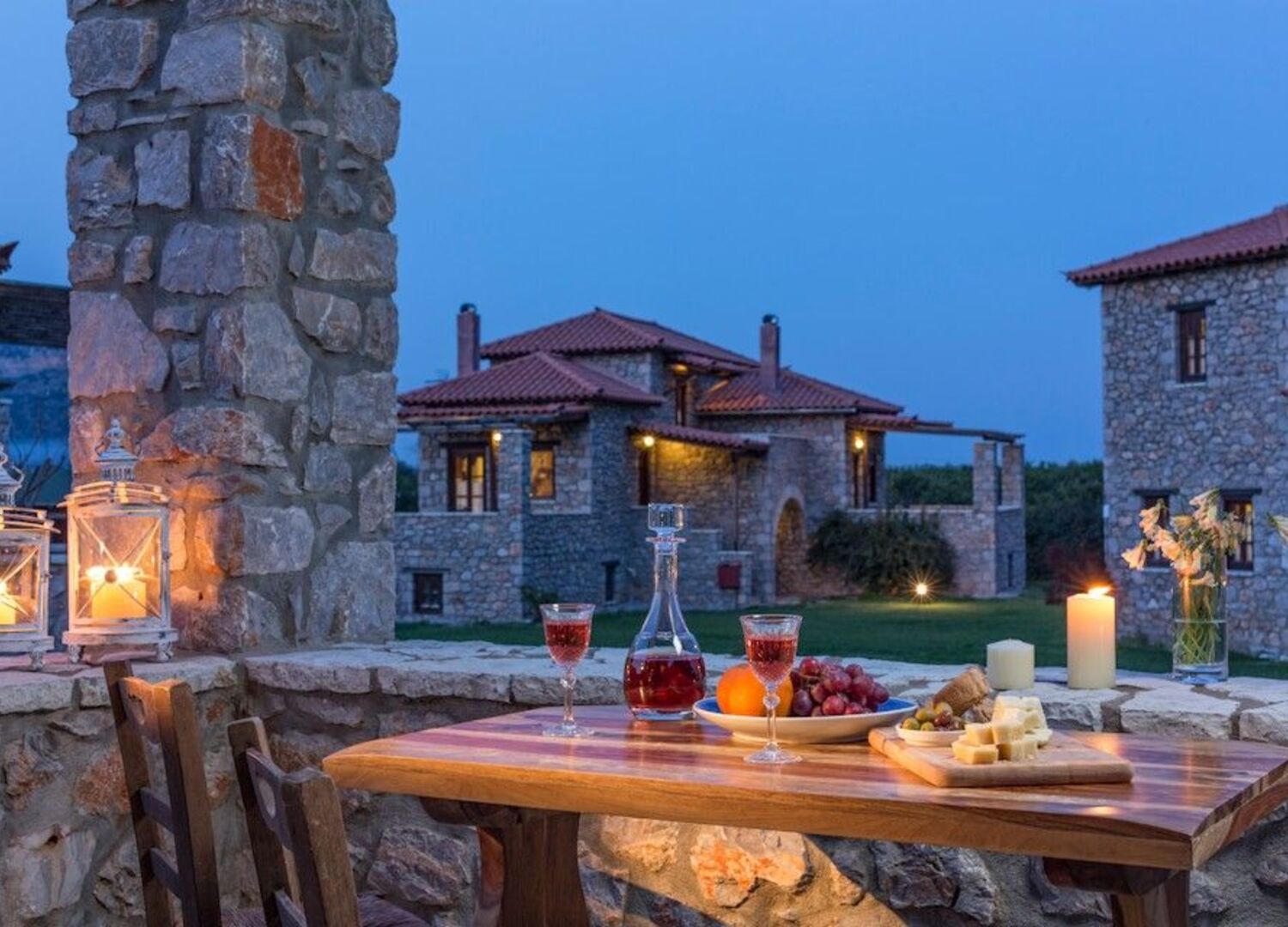 Agroktima is ideally located in between the abundant beautiful beaches and mountains of the region. Charming Leonidio is also a short stroll away, making Agroktima the perfect base to explore the traditions and customs of this well hidden gem of Peloponnese.  AGROKTIMA is a series of ten, independent stone guesthouses with slate-tile walkways guiding you to each entrance. Each unit includes a kitchenette with oak cabinets, fully equipped with dishes and cookware. There are brass fixtures in the bathrooms, air conditioning, a cast-iron fireplace decorated with wood and stone accents, plasma television sets, traditional light fixtures, wooden rafters and hand-carved furniture.