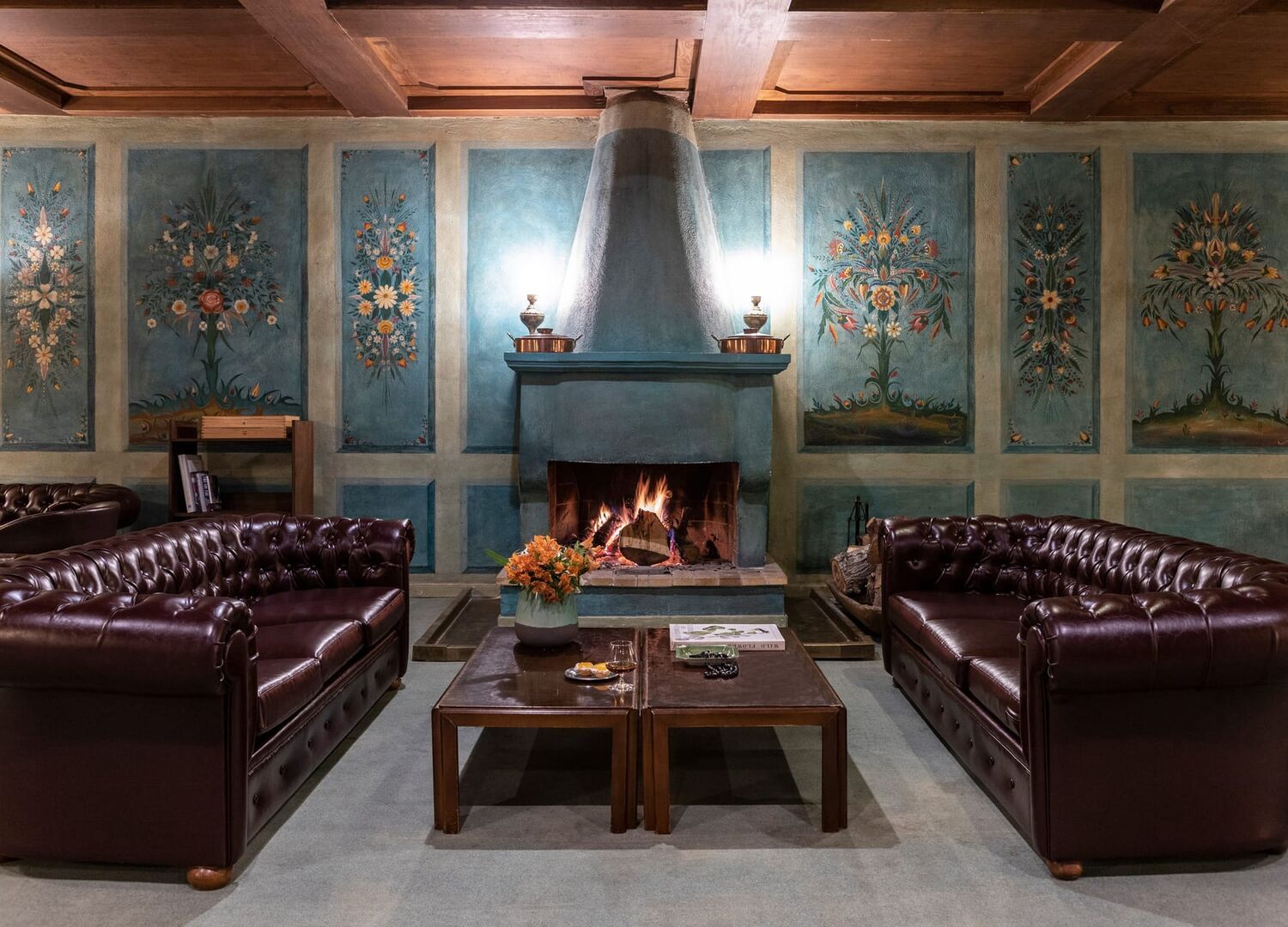 The lounge bar area of the hotel offering a cozy feeling, piano music and two fireplaces. Here you can enjoy a variety of cafes, fresh juices, cocktails or snacks..