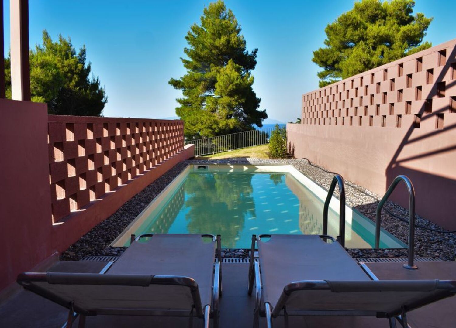 Amandola Villas is a luxurious getaway located in North Evia, Greece, just a couple of hours from Athens. Nestled among green pines and dense forests, the villas offer stunning views of the Aegean Sea and the surrounding natural beauty. Each of the 8 fully equipped villas comes with a private pool overlooking the sea. The area is perfect for outdoor activities such as biking and hiking, making it an ideal destination for nature lovers.