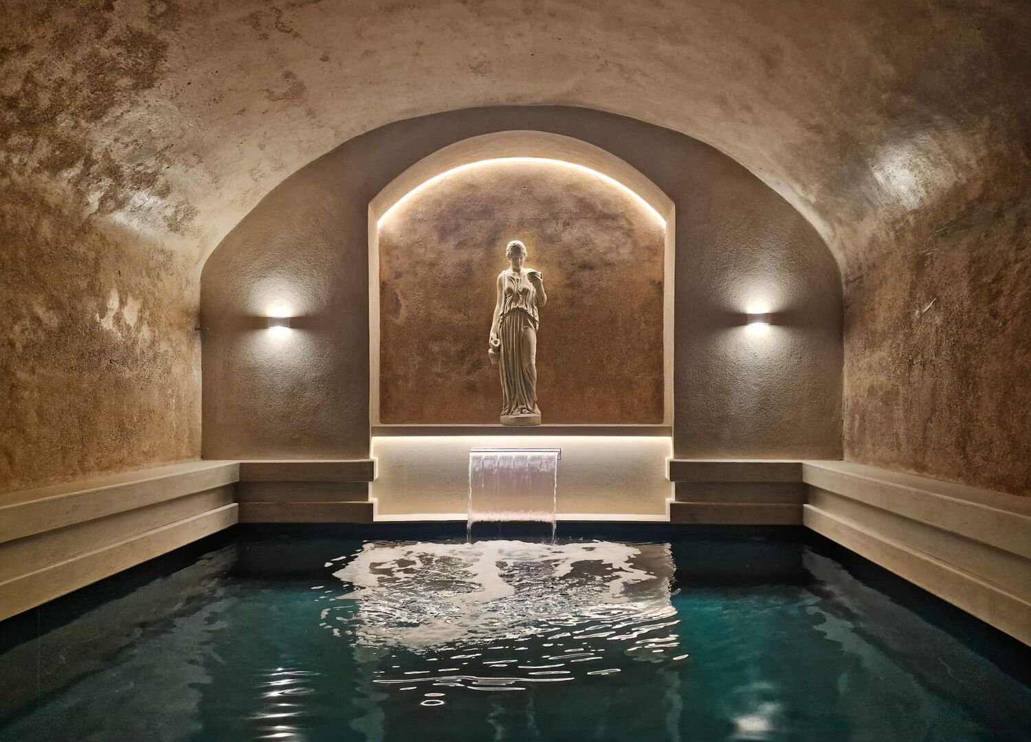 The culture of well-being that traditional baths once offered is being revived in Argini. Inspired by the practices in ancient Greece, which were more than just a means to cleanse the body, our hammam is the place where guests can enjoy the pleasant warmth and its beneficial effect on their body and mind. An indoor heated pool with hydromassage is dedicated to offer a refreshing feeling in an environment with a vaulted ceiling and low lighting.