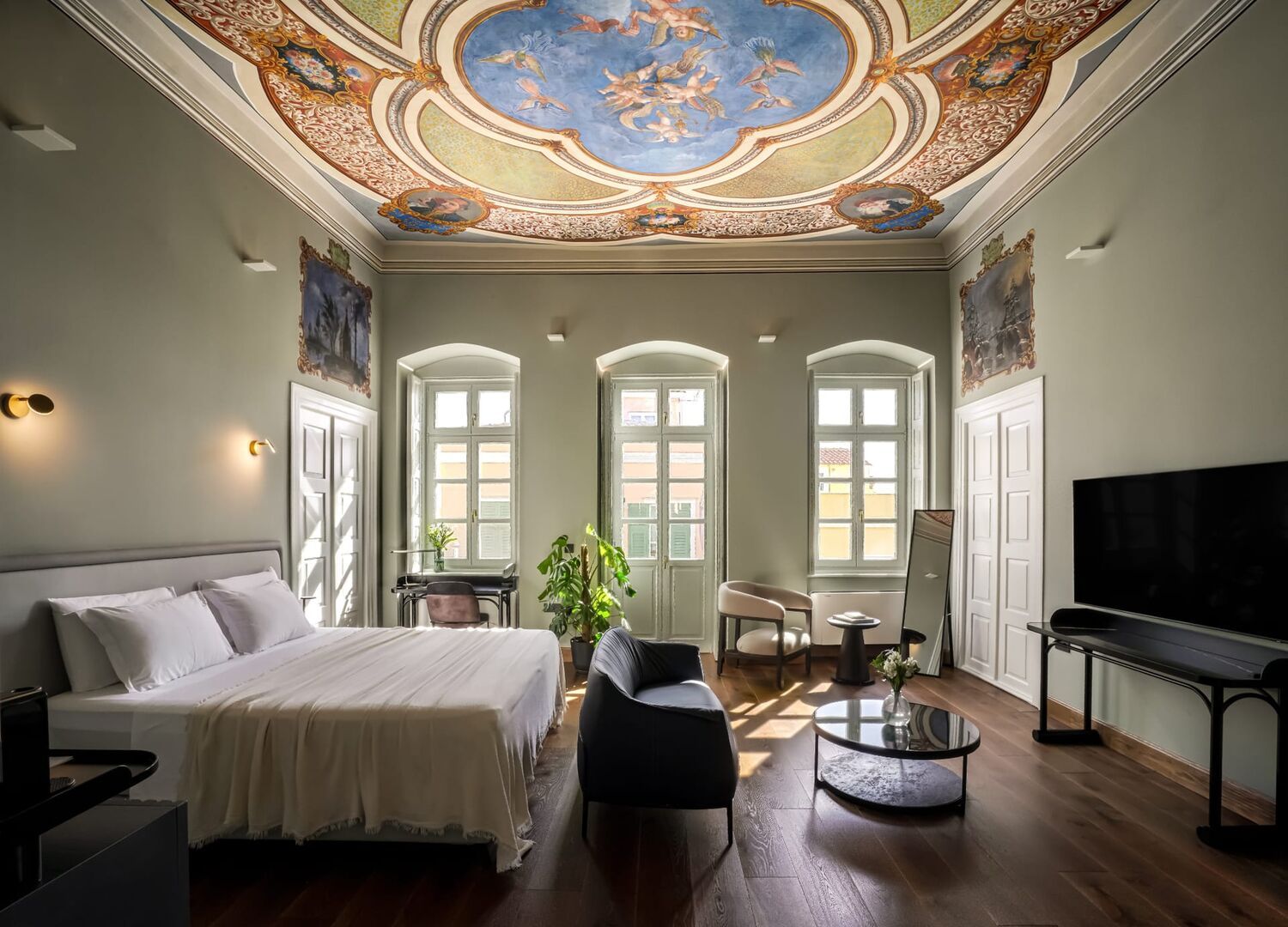 All suites and rooms are designed to balance timeless charm with modern comforts. The ceiling paintings have been restored to their original splendor. The beds have a triple mattress system to increase comfort. The smart lighting system allows guests to choose between different scenarios. Furnishings include contemporary design lights by leading brands and custom made creations that illuminate the wall paintings while protecting them against high temperatures. The Argini offers smart home technology, integrated air-conditioning and heating, smart TVs with Netflix and cable, high-speed wireless internet, marble bathrooms with underfloor heating, walk-in rain showers and Bulgari amenities. Here every detail is meticulously chosen to create a guest experience like no other.