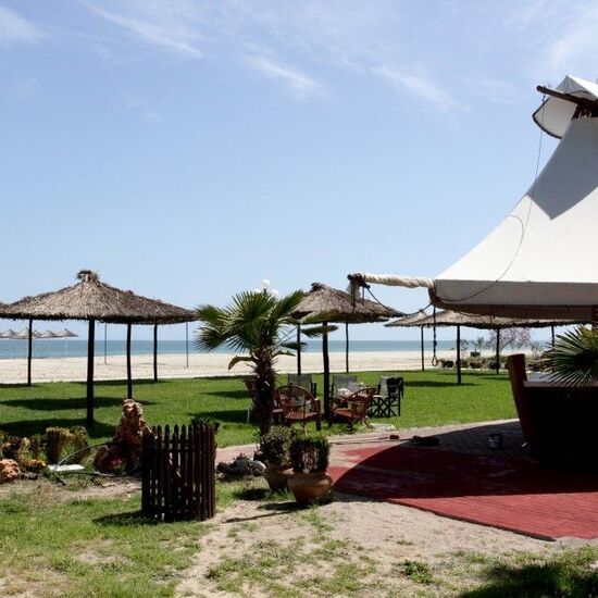 30 meters from the sea you can find the Camping Odysseia. 40000 m2, Restaurant, Tavern, Bar (Karavi), Mini Market, Public Shower, Water Access, 120 places for mobile homes, 20000 m2 for tents under trees, Beach Bar, Sun Umbrellas, Sun Chairs