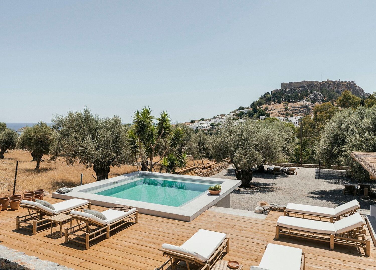 Whether you feel like sunbathing by the pool or relaxing in the shade, the positive energy of the place allows you to deeply connect with mother nature. And as your gaze wanders, it will meet the Acropolis of Lindos, the Tomb of Kleoboulos, and -of course- the sea, as the beach is just a 3-minute walk. We suggest that at least once, you should wake up before sunrise and witness it as the sun comes out of the sea. It’s site second to none.