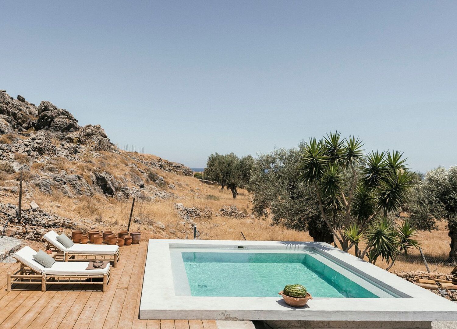 Our guest house is placed at a 2,000 sq.m. plot, with a majestic rocky side with scattered bushes standing on the northwestern side. It might seem unreachable for us, but the beautiful wild goats of the region often descend it and approach us. Right next to it, an olive grove with perennial trees, and a typical Mediterranean garden with Greek herbs and flowers.