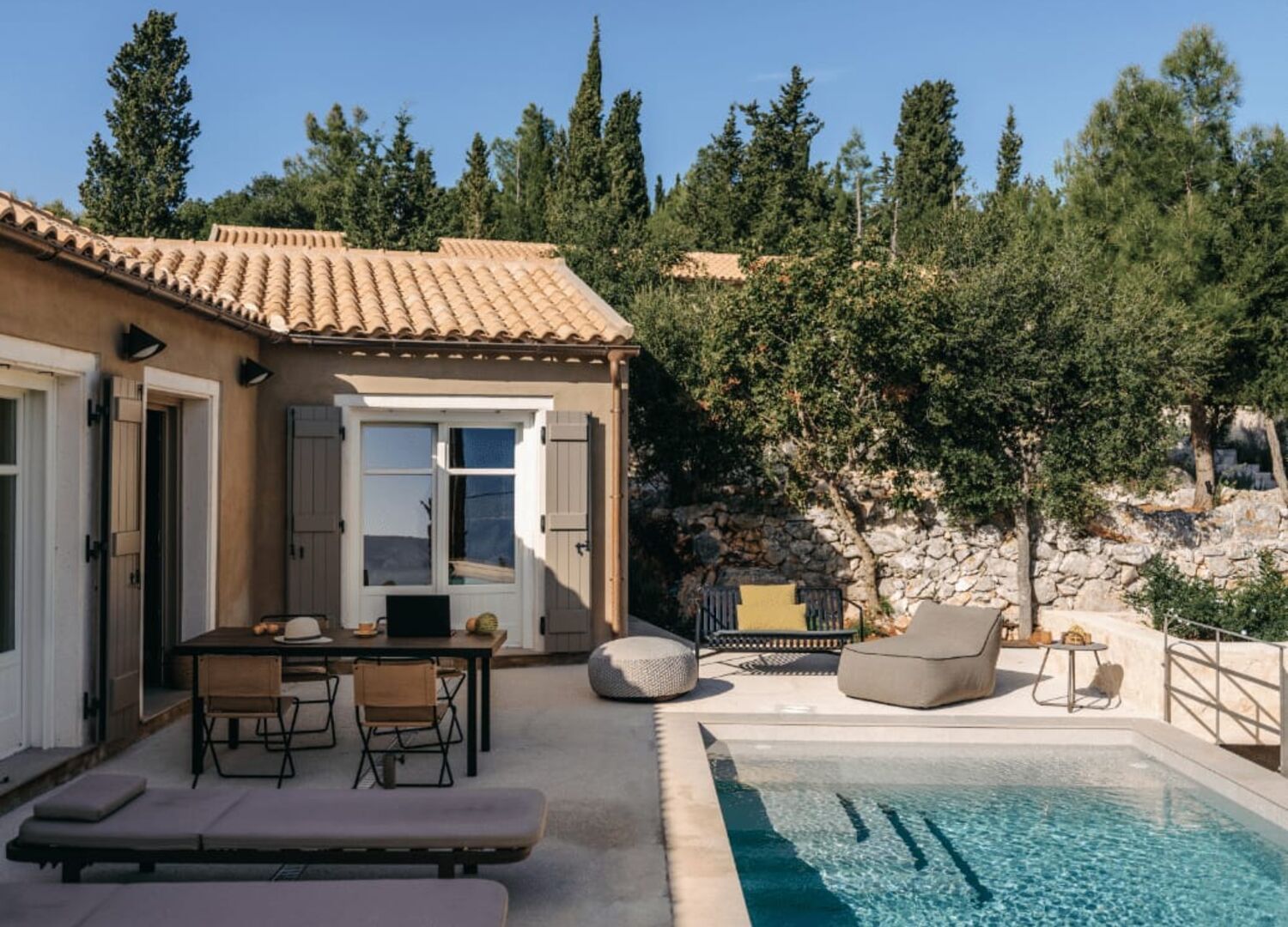Such a gem! We stayed in the Angular villa, everything is beautifully designed the house, the pool, the outside areas. The atmosphere is relaxing and calming, and the design is a perfect mix of traditional stone with simple tasteful interiors. The house has everything you need and the views of Ithaca from the pool and terrace are incredible. The villa would suit a family of four or two couples, and if you are two families it would be perfect to rent both villas together. The villa is in a great location close to Fiskardo and to lots of lovely beaches and only 30mins to Assos and Myrtos beach. The welcome goodies were fabulous, everything is very well thought through and Marina is an amazing host. Absolutely loved staying here only wish it could have been for longer.