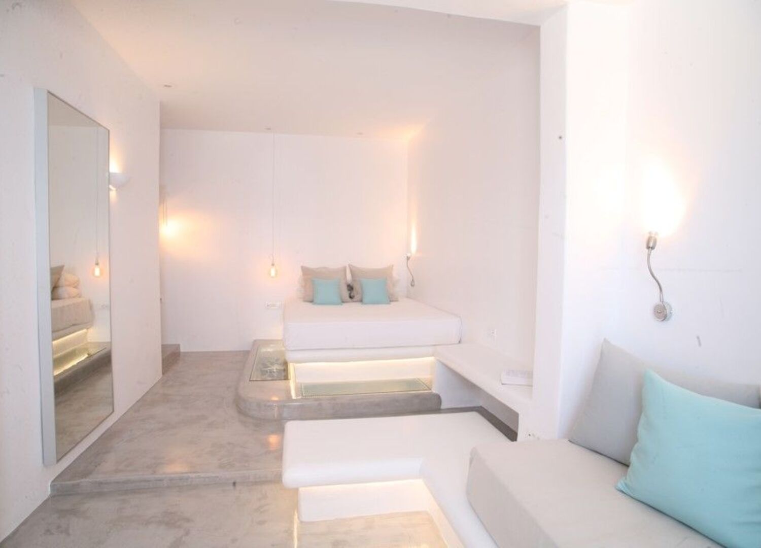 Furthermore, the ideal location above Agios Stefanos Beach and the close proximity to Mykonos Town (5-minute drive), makes for a great proposal among luxury suites in Mykonos and hotels as well, as guests can access the beach or the town in a matter of some minutes.