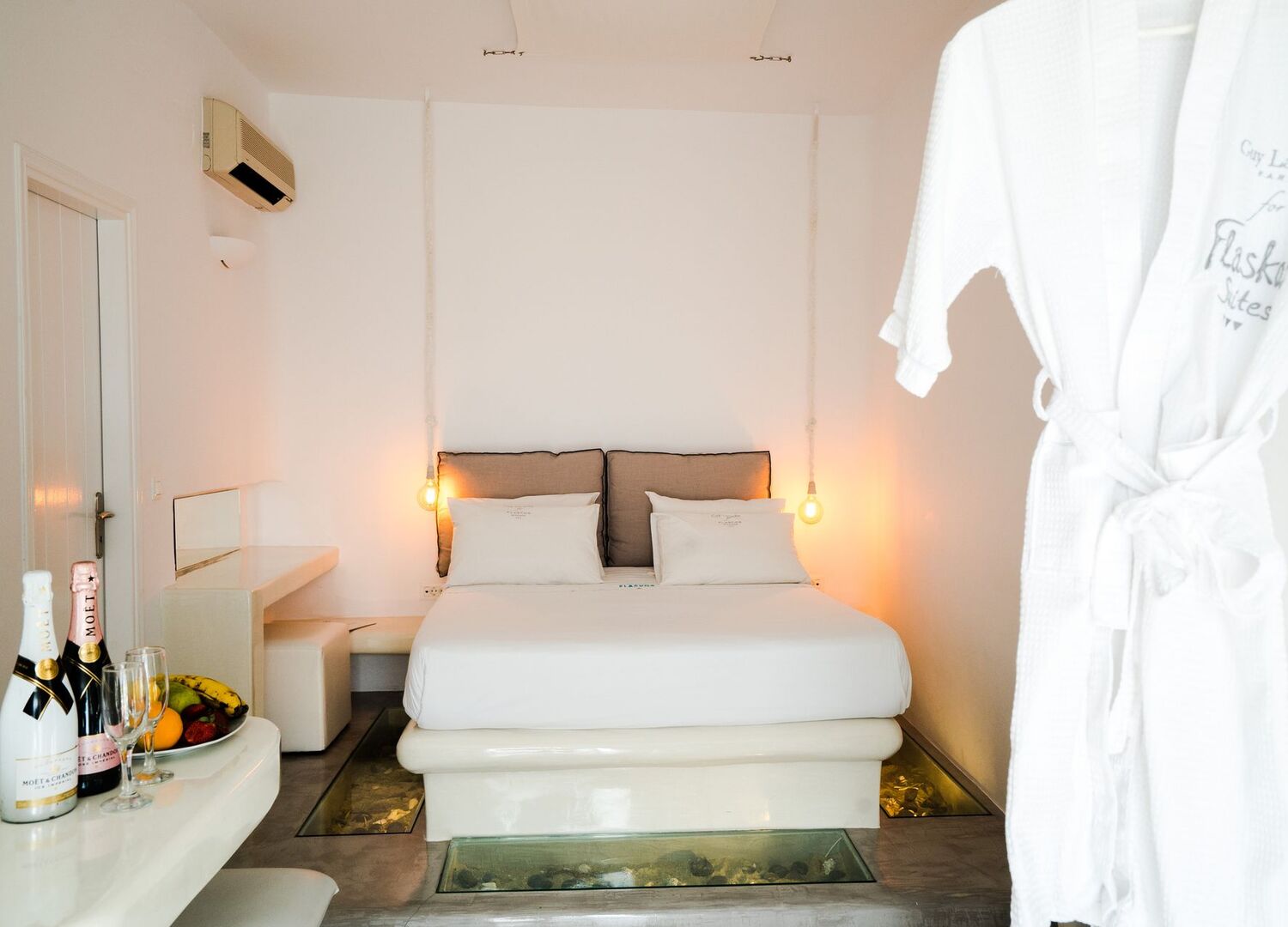 Fully refurbished and launched in 2016, the Luxurious Flaskos Suites in Mykonos Island, Greece, have been designed following the latest minimalistic design trends, of soothing Greek colors, simplicity and traditional Greek design elements, especially Mykonian and Cycladian.