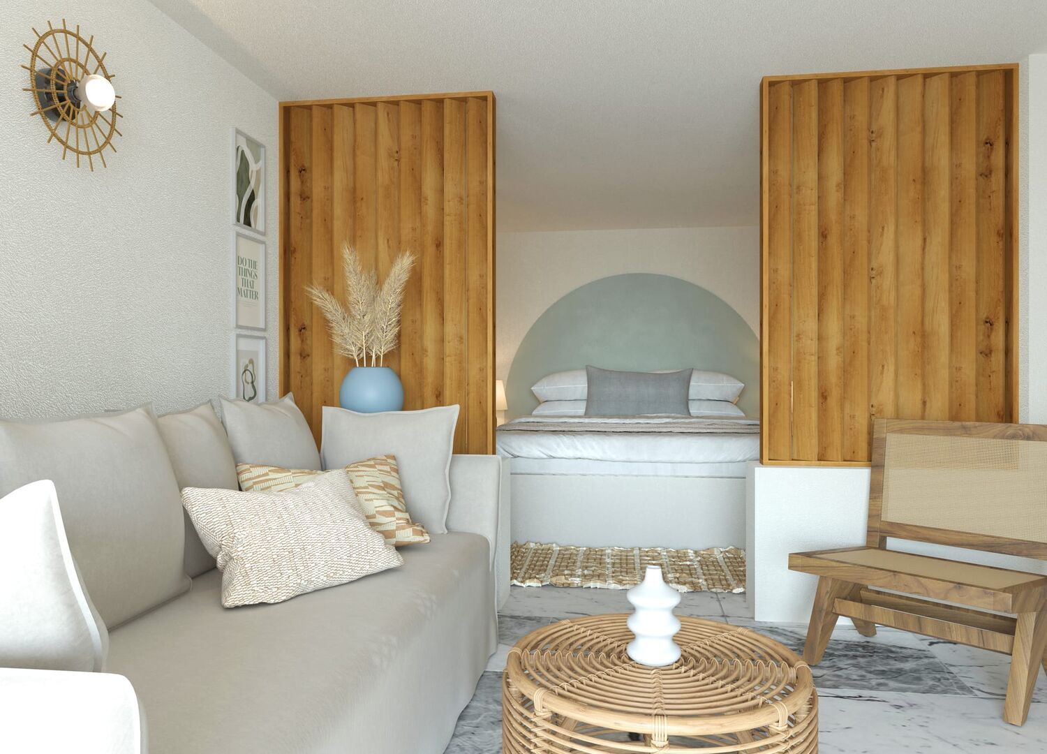A beautiful villa with direct access to private beach, 10 minutes drive to nearest civilization. This place is perfect for travelers with a car since it will take at least half an hour to walk to the closest shop in the area. However, the beach offers amazing privacy with access to a beautiful beach that has super clear water and each villa has its own kitchen where you can prepare your own meals in the Villa. The Villa comes with a beautiful garden with rosemary and other types of plantation overall good value for money.