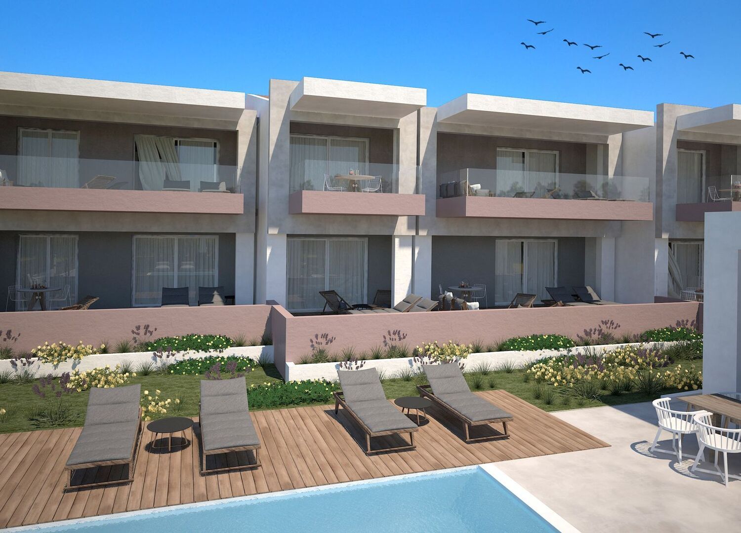 It consists of 8 modern apartments and suites, in a complex that has a communal pool for children and adults, reception, lounge, pool with pool bar. The complex is 70 meters from the beach.