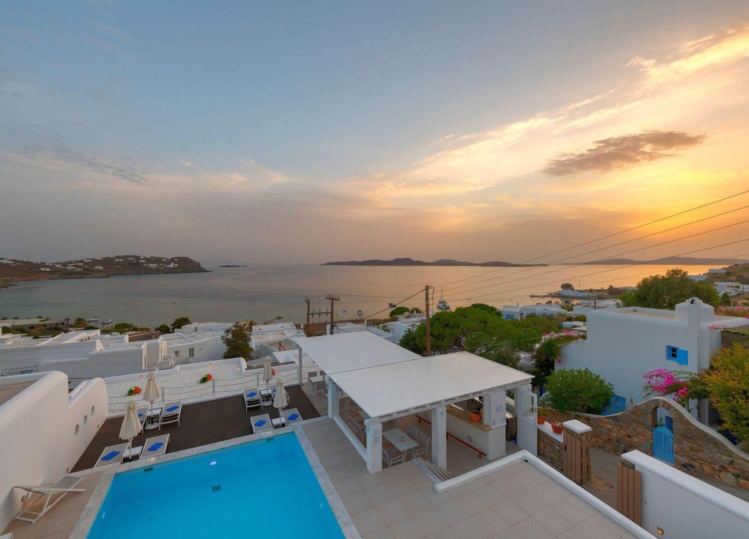 The hotel’s studios and suites are built in authentic Cycladic style with a priority to luxury and comfort. The hospitable and family atmosphere along with the friendly staff service ensure that our guests enjoy a pleasant stay and a truly memorable holiday experience. The traditional chapel of Agios Ioannis, the picturesque harbour, the magnificent view, the sandy beach and the delightful blue water of the Aegean Sea are only a few reasons why one would choose to spend their holiday in this particular part of Mykonos island.
