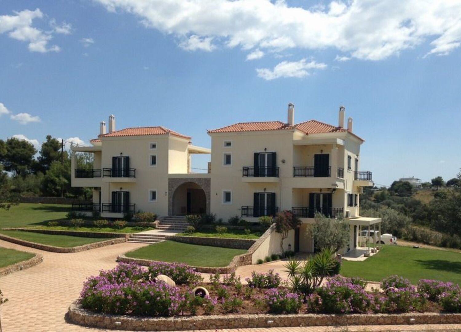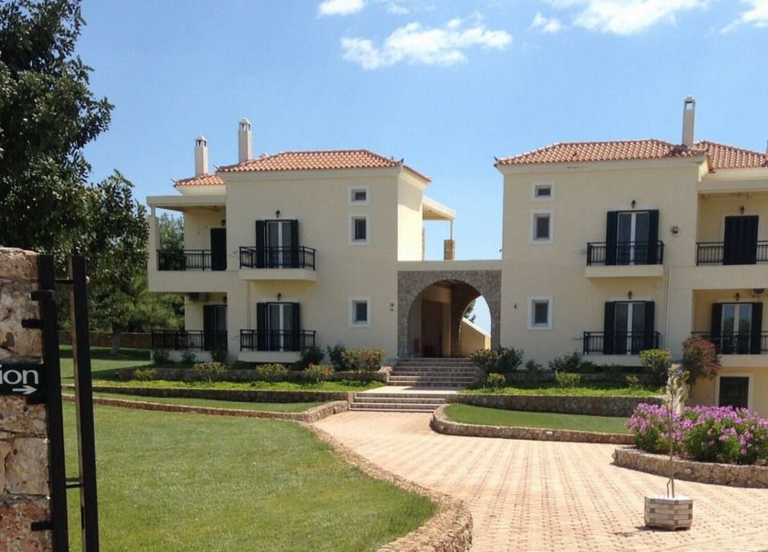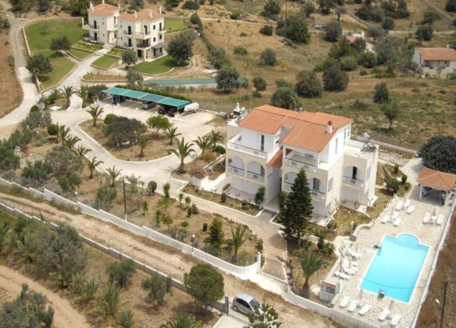 In the main building with the lawn  you will find the reception area and the Spa . Here our facilities allow you to have safe and completely filtered afalatomeno water and heating with radiators in winter. In front of the apartment building  you will find the pool area .  Separate covered parking can be found in both buildings. The wider area of eight acres dressed in green and a variety of trees and flowers is at your disposal to enjoy relaxing or playing with your children.