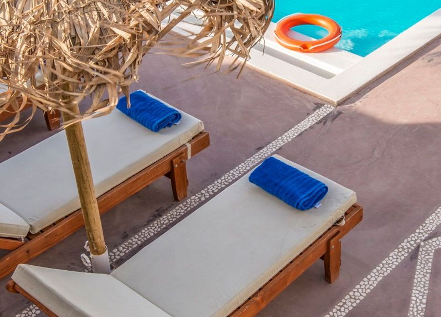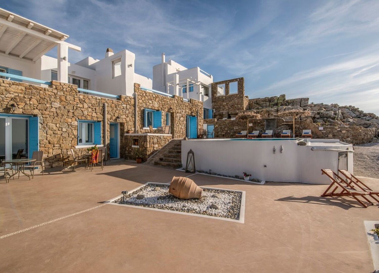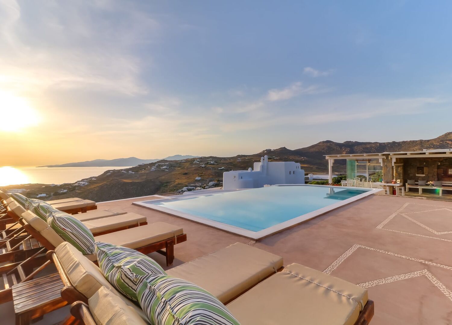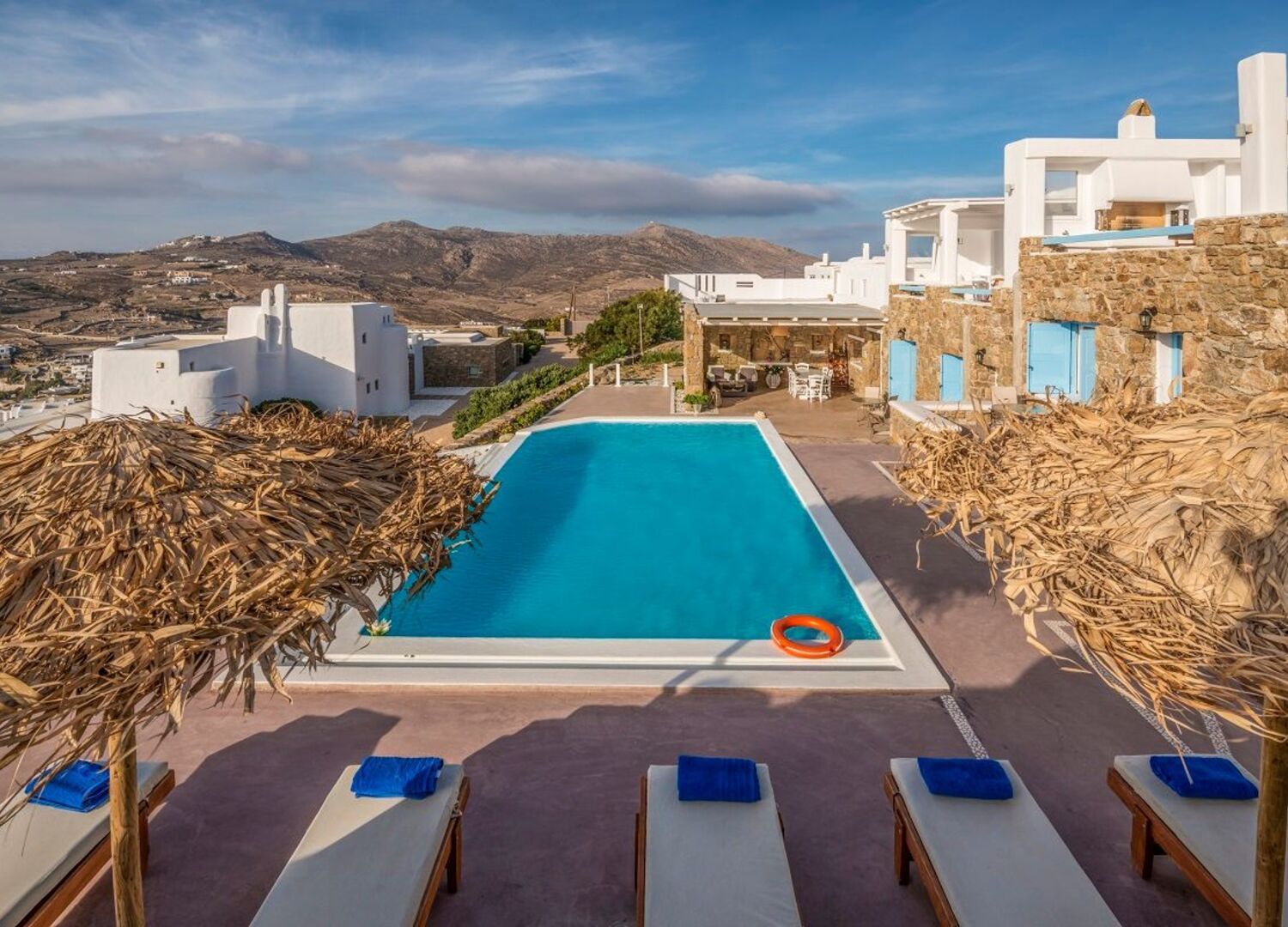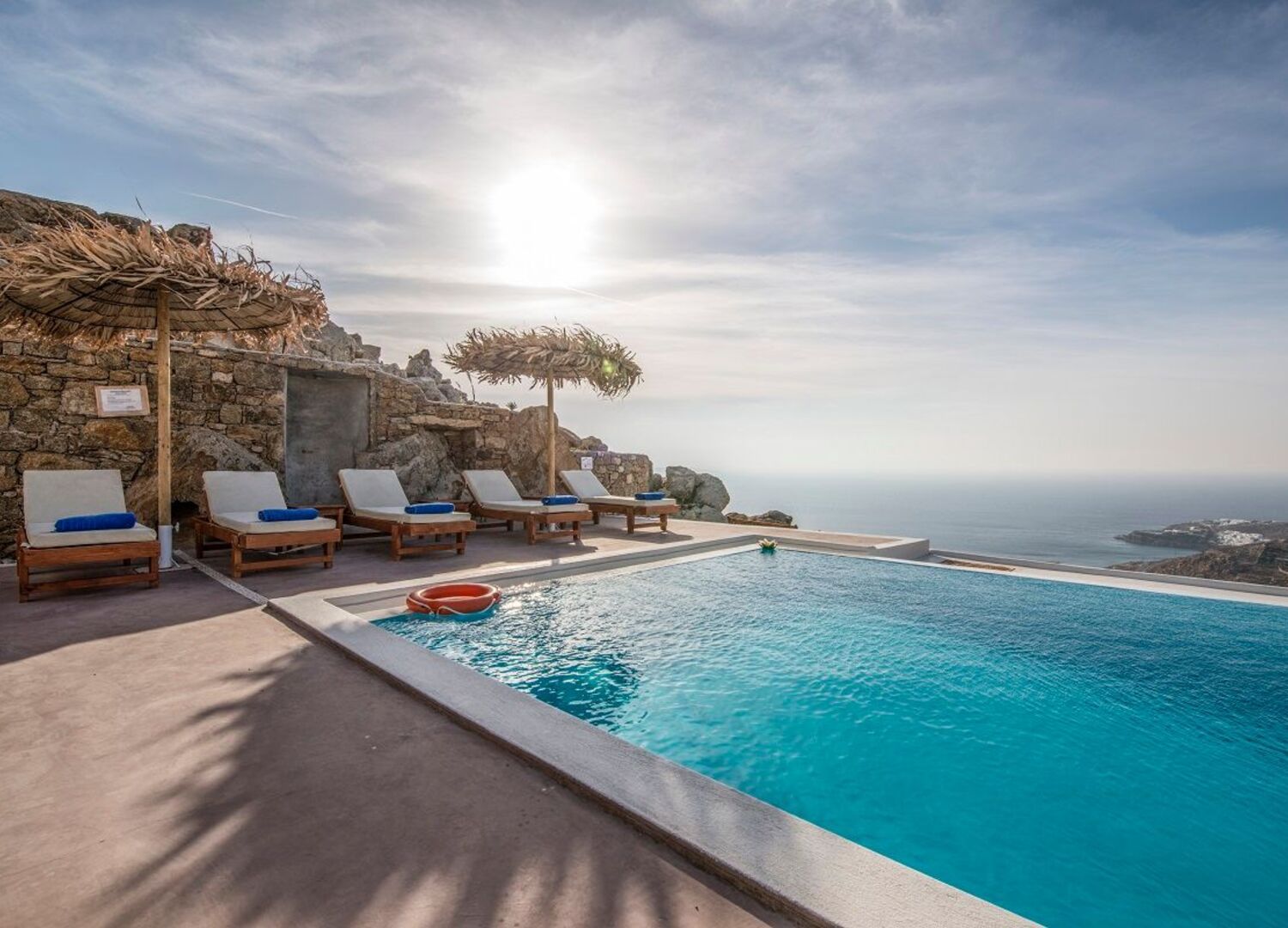 The stone details in the interior and the blue colour of the swimming pool breathe the genuine island breeze. The sublime view of the Aegean Sea from the new port of Mykonos to the sacred island of Delos and other neighbouring islands will provide you the warmest welcome and hospitality throughout your stay at MANOLIA VIEW!