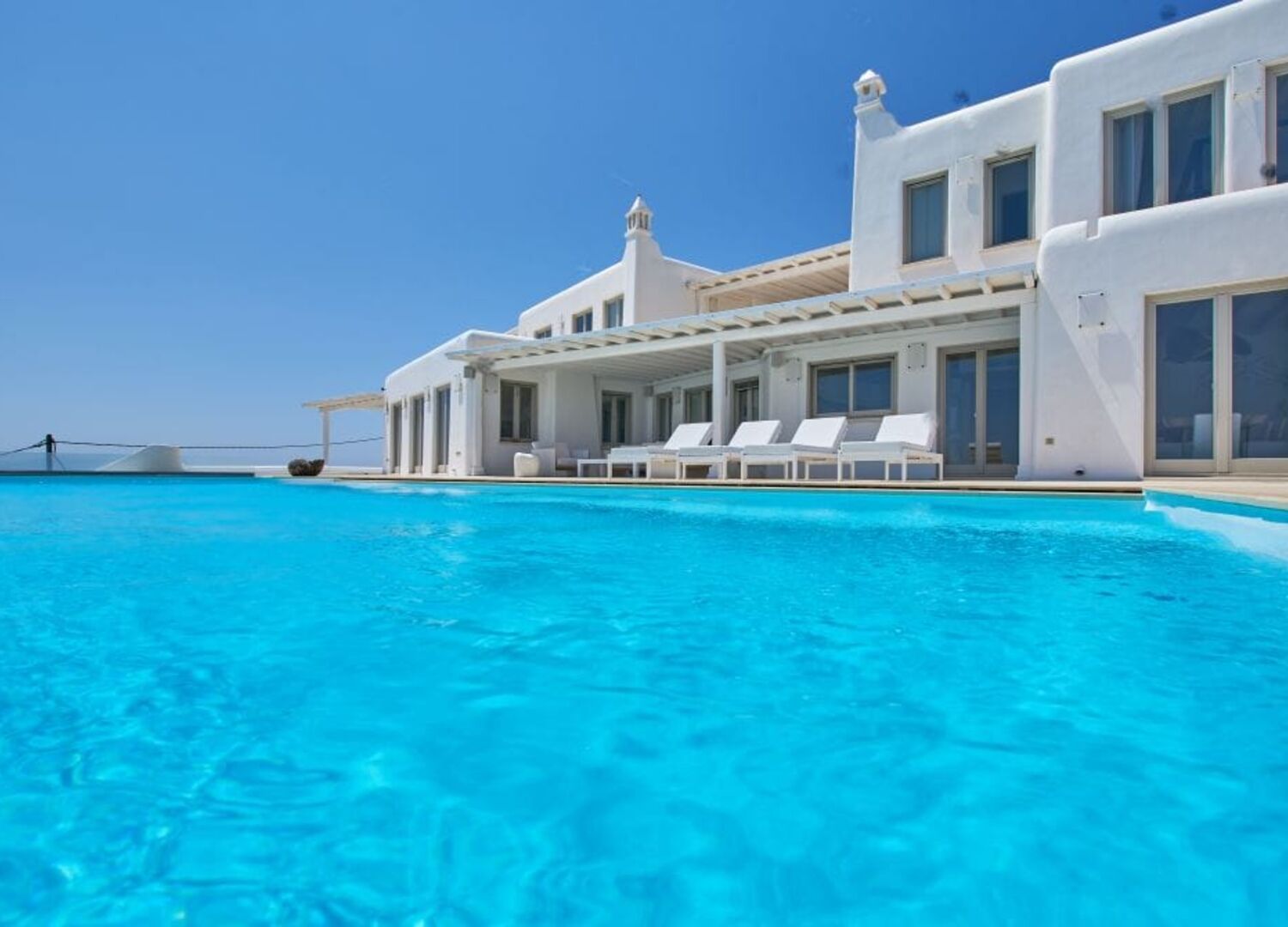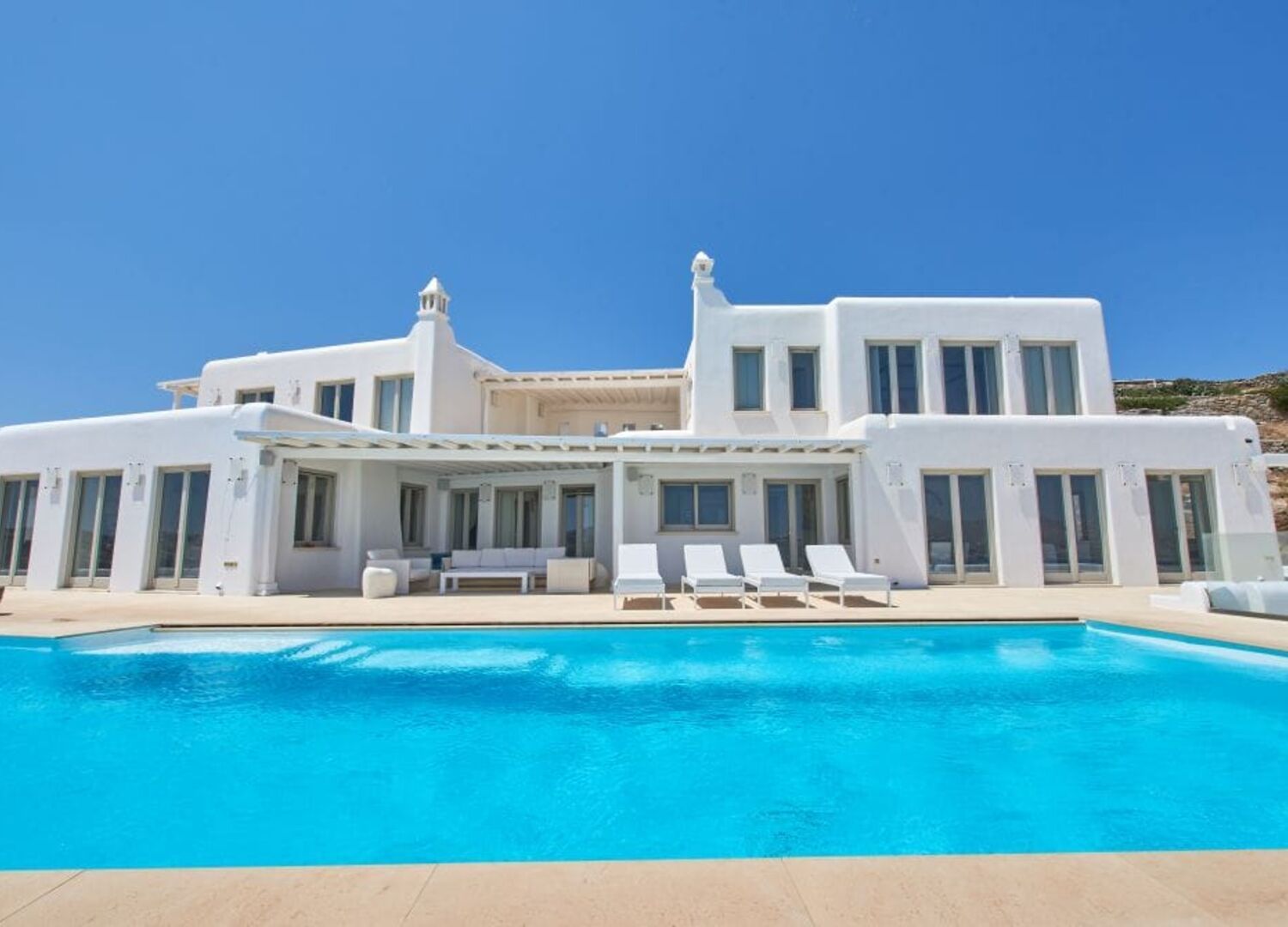Mykonos On The Rocks is a stunning villa located in Diakoftis, overlooking Ornos Bay. Combining traditional Cycladic architecture with modern interior design, this bright and spacious villa offers luxurious accommodations with breathtaking views of the Aegean Sea. Located in Mykonos, this villa is the perfect retreat for those looking for a luxurious and relaxing stay.