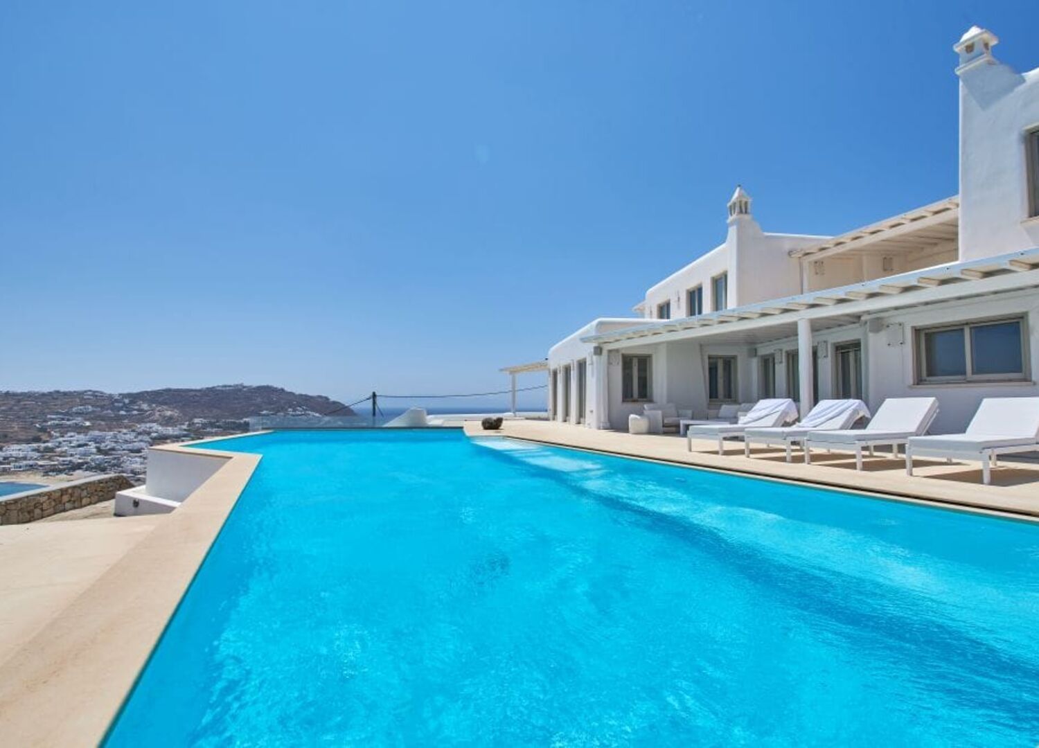 We stayed at Villa Sunstone in the Mykonos Rocks complex for my hen do as a group of 9. The villa is absolutely stunning and the pictures really don’t do it justice. The bedrooms consisted of 6 doubles all with en-suites (3 downstairs and 3 upstairs). 2 of the upstairs bedrooms opened up onto the terrace and two of the downstairs bedrooms opened up onto the pool area. The pool area is exactly as pictured, with different seating areas for people to enjoy. It is very close to the airport (you can see the runway from the pool area), but this didn’t bother us at all, the planes are so infrequent that the noise wasn’t an issue. I’ve listed some pros and cons below as before we visited we didn’t see many recent reviews, so hopefully this should give other guests a good insight. Pros - Amazing rooms and comfy beds - Pool area amazing with stunning views (sunsets were beautiful here) - Loads of outdoor seating options sun beds, bean bags, covered seated areas - Large outside table area - The villa is fully serviced and was cleaned daily, including fresh towels, making the beds and cleaning/tidying the kitchen & pool areas - The complex had a gym, restaurant (although wasn’t open during our visit) and options to have a massage/spa treatments for additional cost - Close to the airport - The Mykonos Rocks team can organise a chef / bartender etc to come into the villa for parties / celebrations at an additional cost Cons - Small kitchen, not a working kitchen if you want to cook on a nightly basis - Very small dishwasher - The villa is based in a remote area up very steep hills and winding roads. You can’t walk anywhere nearby - to get anywhere you need to take into account taxi costs (which were approx 10 euros pp per trip). As it’s a small island it didn’t take long to get to most places but sometimes the traffic is quite bad due to the narrow roads - The villa didn’t have simple cleaning facilities e.g a dust pan and brush was needed when we accidentally spilled something and needed to quickly clean this up We had the most amazing stay here and would recommend this place to anyone as long as they are happy with the remote location. Mykonos is stunning and we will definitely all be returning! Thank you Mykonos Rocks