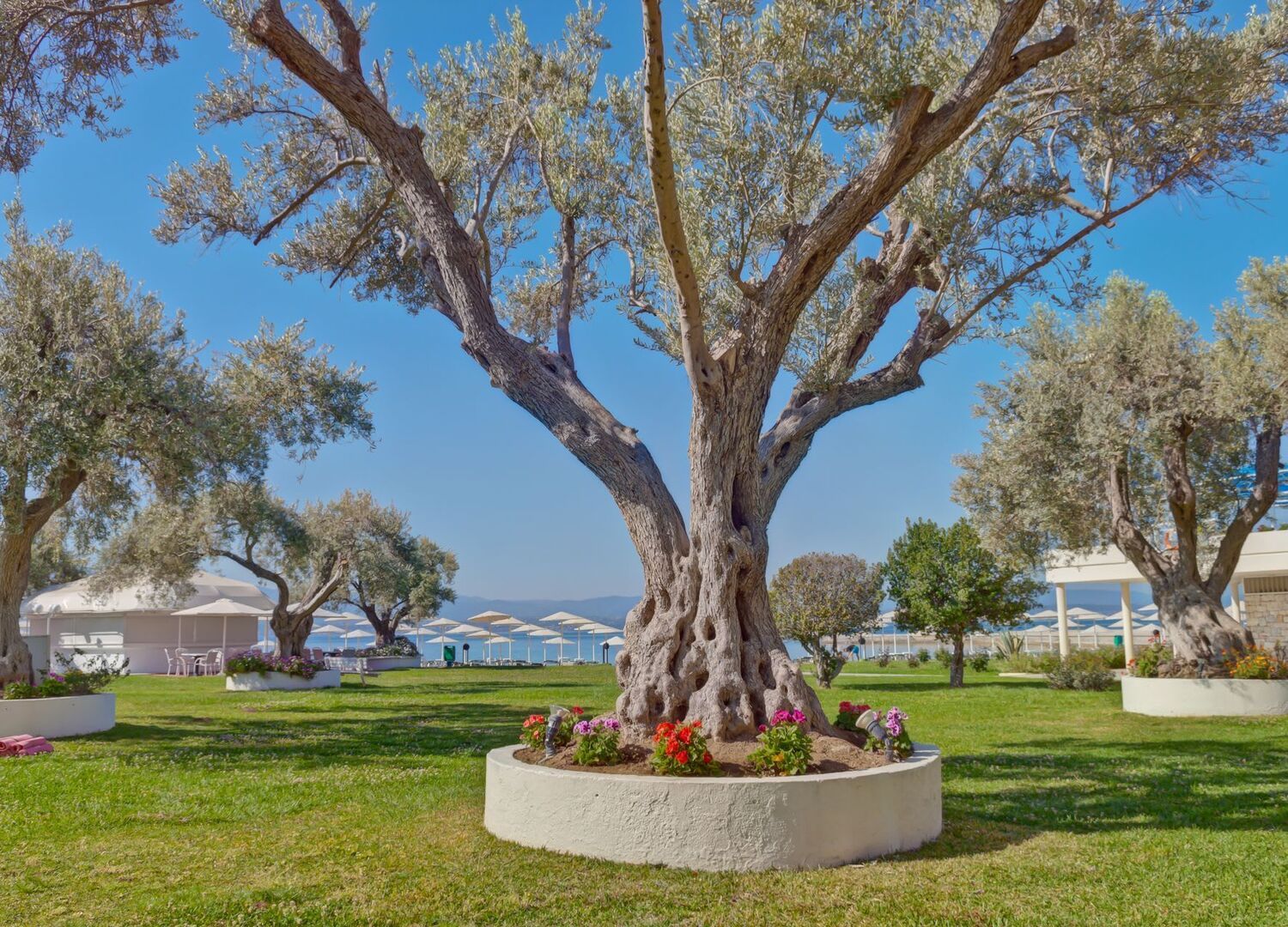 With panoramic views of the Euboean Gulf, Palmariva Beach Hotel in Eretria, Evia, is an ideal destination for unforgettable vacations. The hotel features a private sandy beach, an outdoor swimming pool, and meticulously landscaped gardens.