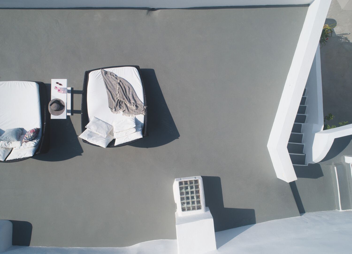 Vaulted internal spaces, curved edges and glass-brick skylights are some of the studios and suites predominant features that create a unique ambiance of serenity and comfort. The sunwashed verandas, private terraces and balconies are exquisite moments of peace and tranquility while sunbathing after a dive in the swimming pool or enjoying the stunning panoramic view of the island’s wild coastlines.