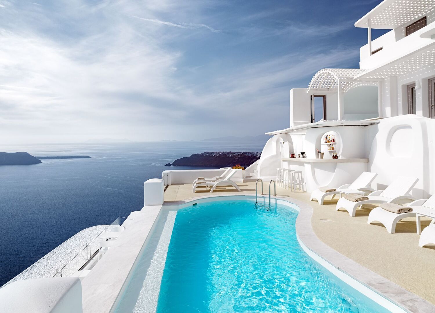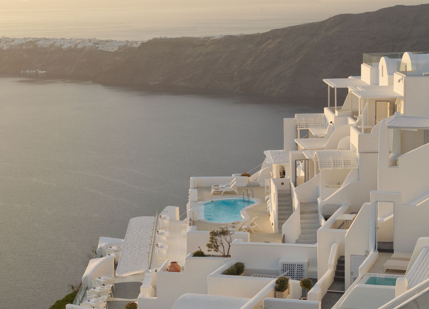 THOLOS RESORT consists of a complex of traditional studios, apartments and a new unit with suites. It is located in Imerovigli on the rim of the Santorini Caldera. It has a panoramic view of the famous Santorini sunset, the volcano, Thirasia island, the Santorini port and Akrotiri.