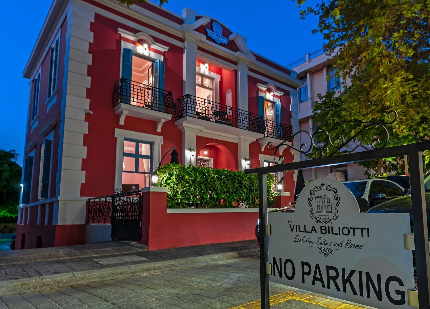 Via Villa Ilioti is a magnificent neoclassical Rhodian property, located in the city center of cosmopolitan Rhodos island.It has been fully renovated to it’s original beauty and is a typical example of early postwar Rhodian architecture dating back to 1910s.The building stands on a large piece of land with a garden full of flowers and two huge over 100 year old Rhodian Fikos(FICUS NITIDA) trees. Our guests will have their own private car parking area which is located at the back of the building. This unique property comprises of 8 exclusive suites and 4 double rooms, all of which have been furnished with exquisite taste. All furniture is wooden, handmade by the best craftsmen and compliment the the style of the whole building.Our beds offer maximum comfort and guests will have the opportunity to choose from our pillow menu if they desire to. Everything we use and offer has been chosen with care in order to offer maximum comfort and satisfaction to our guests.Due to it's prime location,Via Villa Iliotti is only a short walk away from many famous landmarks,shops,cafes,bars,and beaches. We very much look forward to welcoming our guests and to help them create wonderful memories for their future. The Iliotti Team.