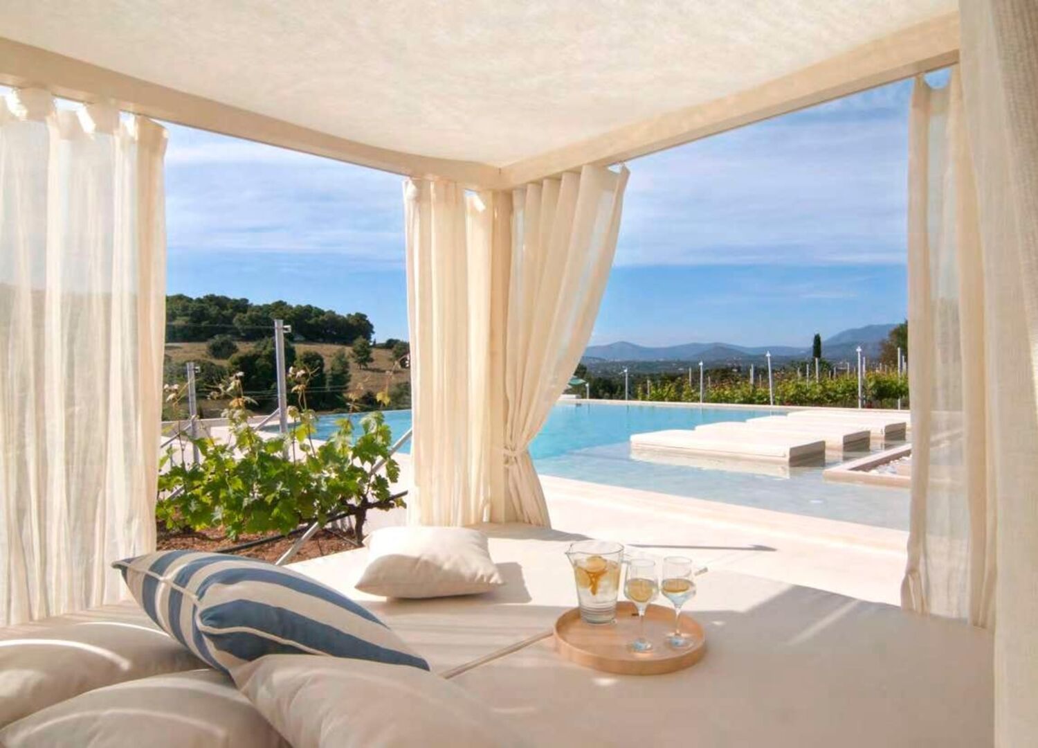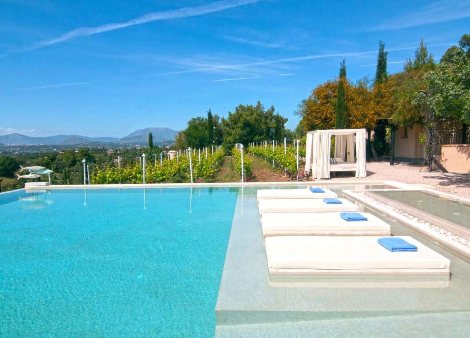 Whether you're sipping wine on a sun-drenched pool, strolling through the fragrant olive orchards, or unwinding beneath the shade of towering trees, the estate provides a sanctuary of peace and refined luxury.