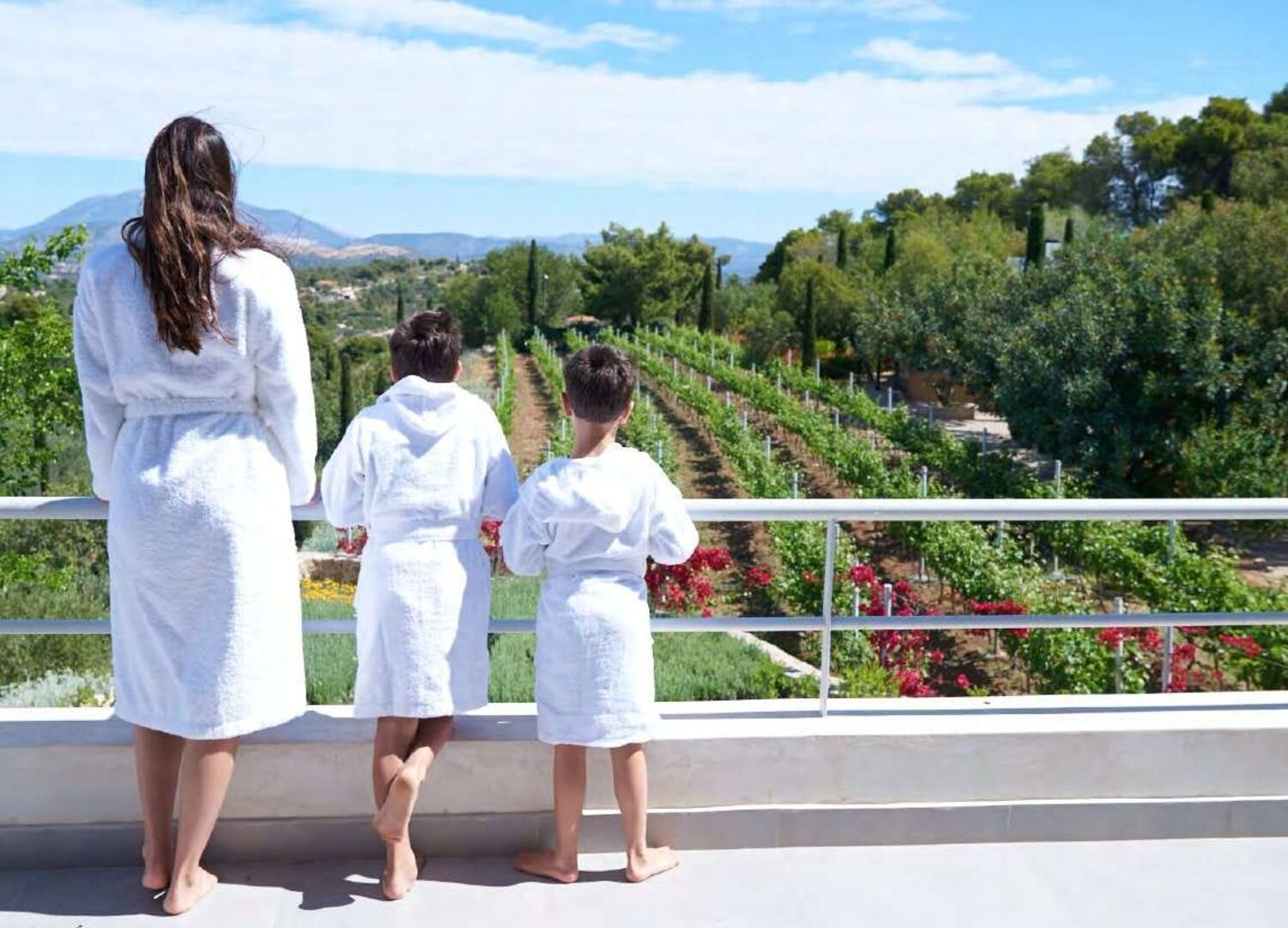 Nestled in a picturesque landscape, The Vineyard Estate is enveloped by lush vineyards, olive groves, and serene pine forests, creating an atmosphere of pure tranquility and natural beauty.