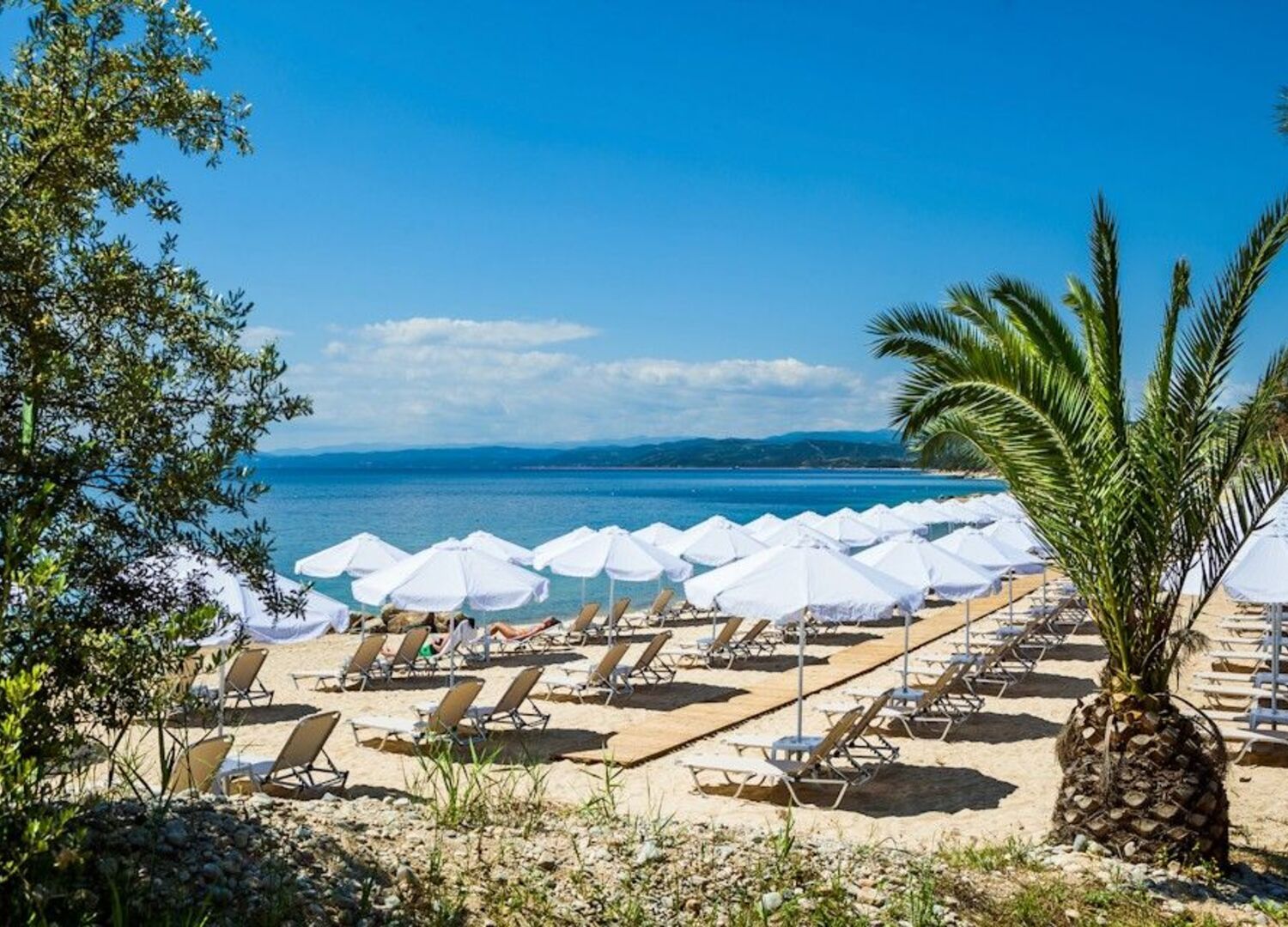 Theoxenia Hotel is located 110 km from Macedonia Airport and 4 km from the village of Ouranoupoli, where our guests love to have walk. In this cosy village you will find plenty of cafés with delicious Greek coffee, taverns with fresh seafood, bars and nightclubs with exotic cocktails and music.  View from the Theoxenia combines the blue sea overlooking the island of Ammouliani and green woodland that surrounding the property.