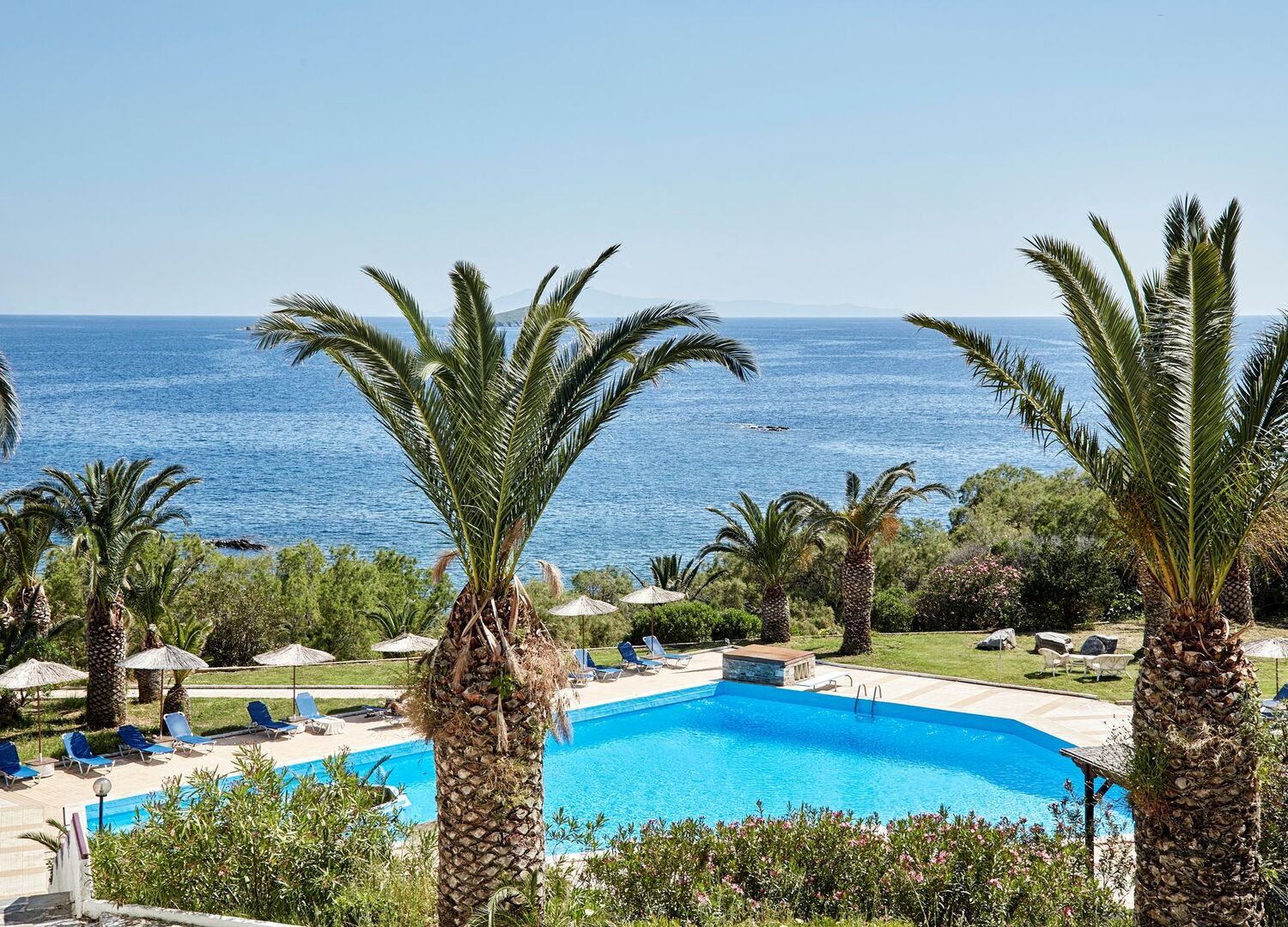 The Andros Holiday Hotel is a charming hotel located in Andros, just 400 meters from the port of Gavrio. With traditional Cycladic architecture, 78 spacious rooms with sea views, a large swimming pool, tennis court, and poolside taverna, this hotel offers the perfect setting for a relaxing holiday. Children can enjoy the open green spaces, while guests can enjoy meals at the on-site restaurant with stunning views of the pool and sea. The hotel is also a great starting point for exploring the island's beautiful beaches and important sites.