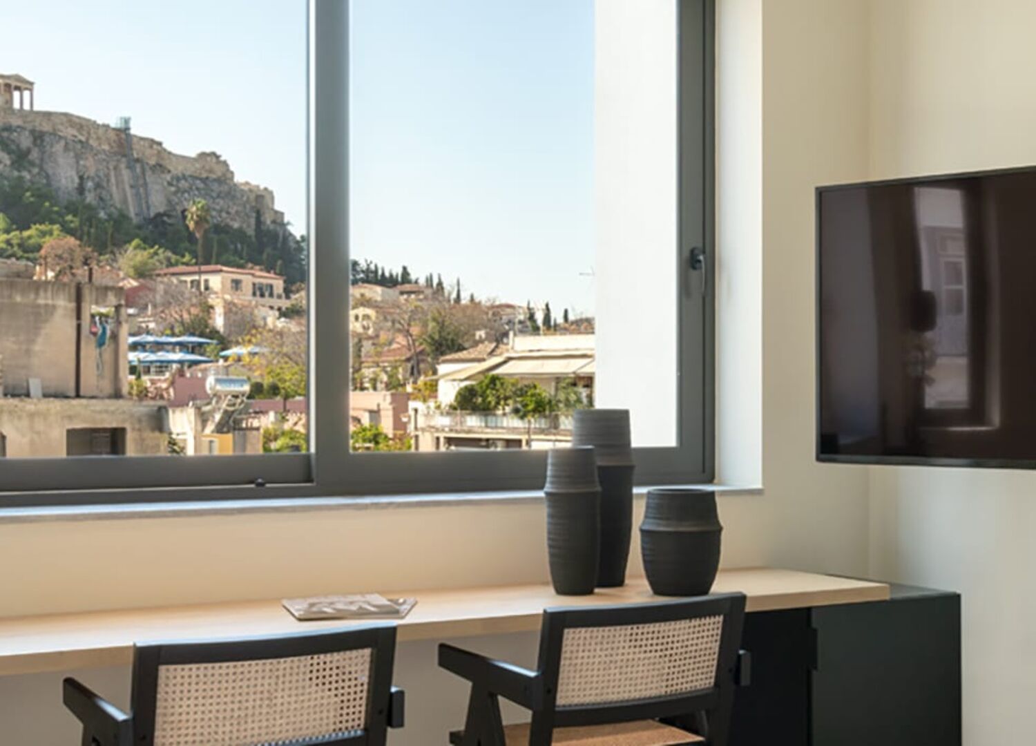 The stylish and sophisticated Woo Suites are centrally located in the heart of Athens on the tree-filled Metropolis Square, facing the city’s recently restored Cathedral on one side and the Acropolis rock and Plaka district on the other side.