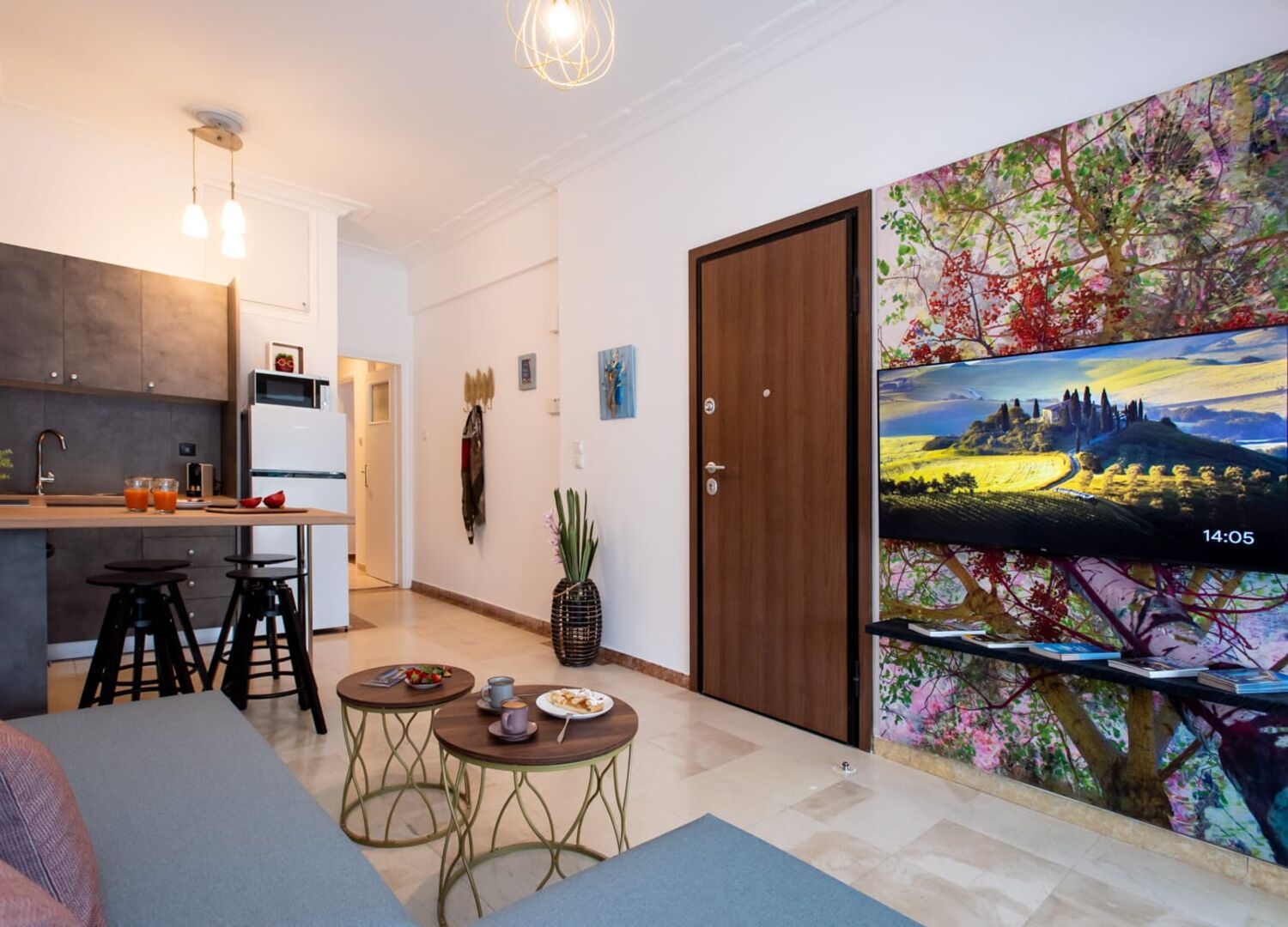 A beautifully renovated relaxing apartment, near Syggrou Fix Metro station and just a few minutes away from the Acropolis museum and Parthenon, is going to be your starting point to explore the city and the history of Athens. It is located between some local restaurants and all the main monuments of the city with the facilities you need to have a spotless stay with your friends and family.