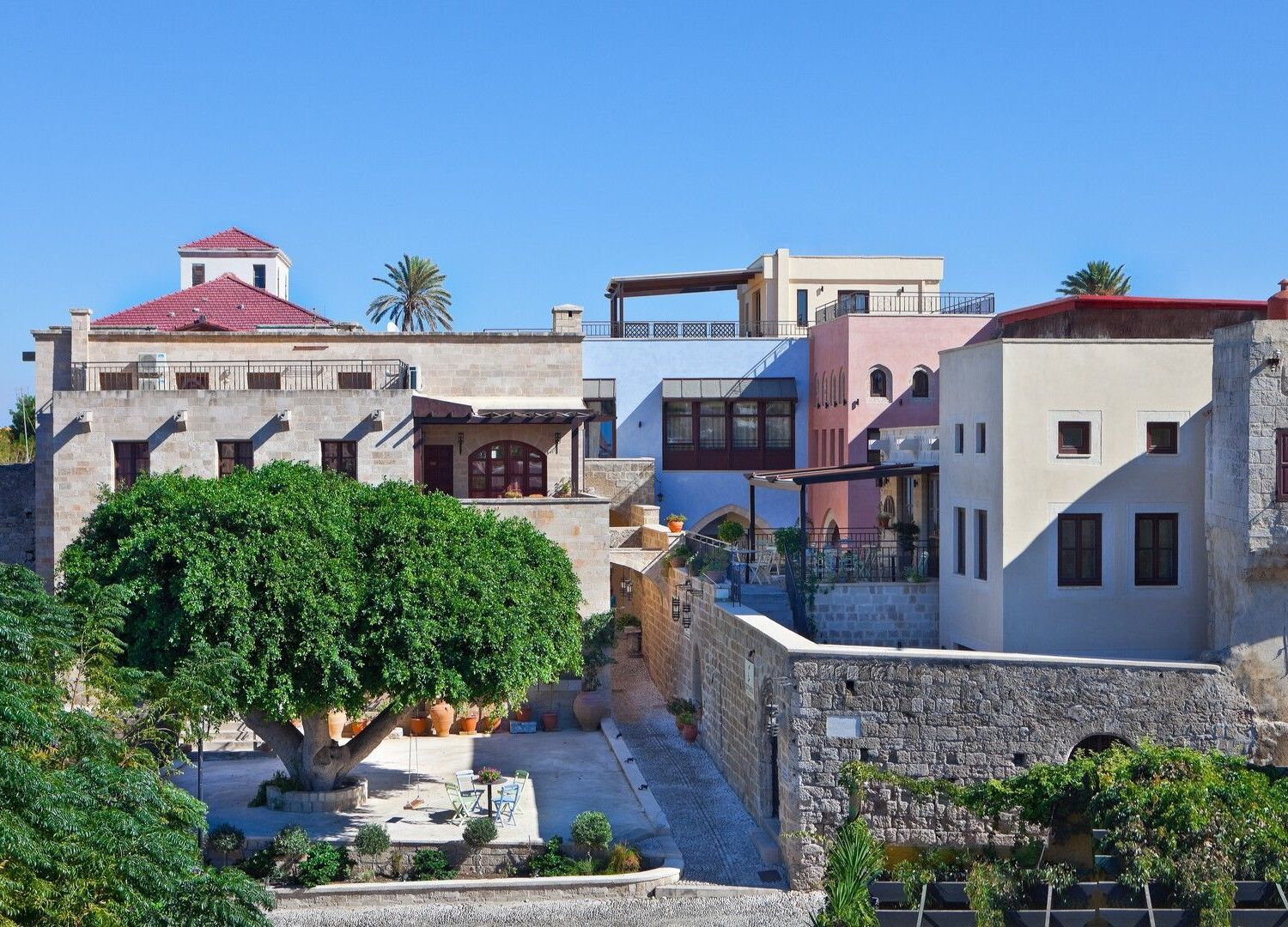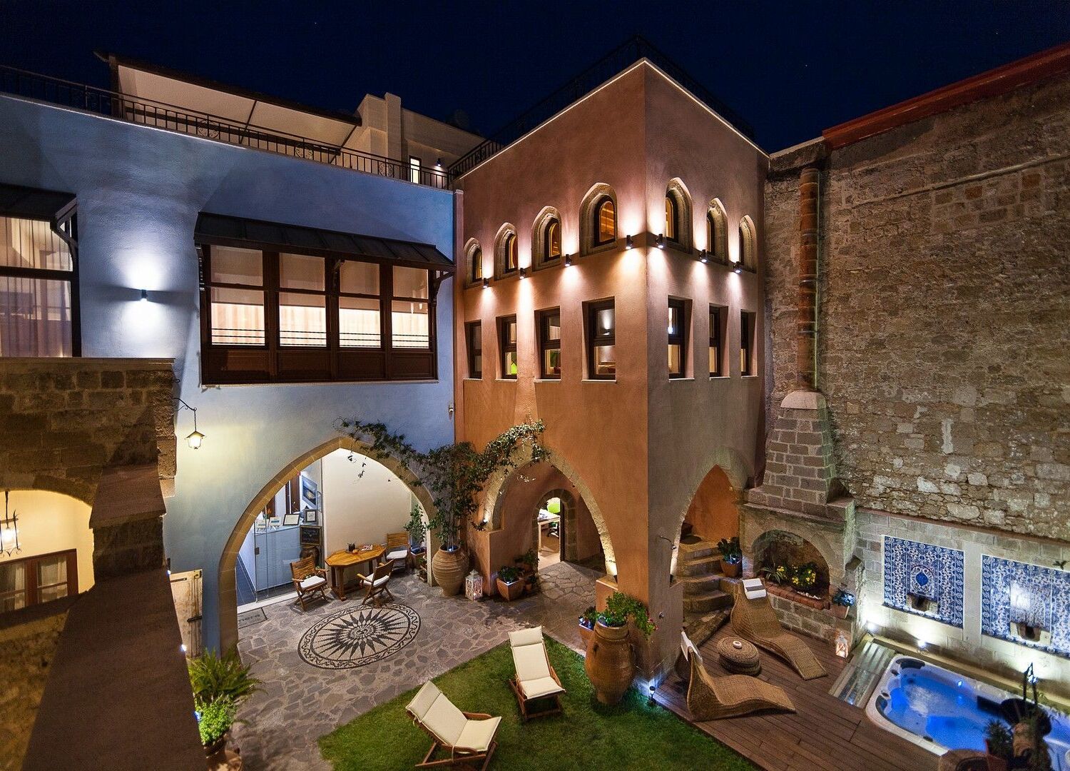Located in the heart of the historical Medieval Town of Rhodes, the hotel’s interior design is a fusion of the traditional Greek houses, with the comforts of modern design.