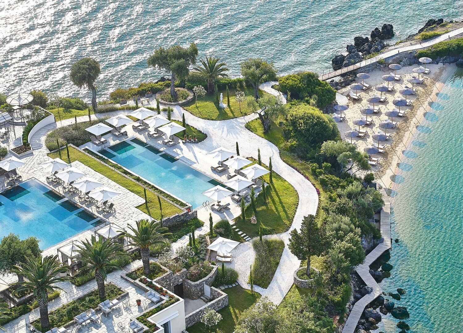 Grecotel Corfu Imperial is probably Greece’s most impressively located hotel, perched above the olive groves at the end of panoramic Peninsula Kommeno. A world of seaside olive trees, marble & palms, beach coves, fine dining and a lovely promenade. It is a room with a view or a palazzo over the water. It doesn’t get any better in Corfu.