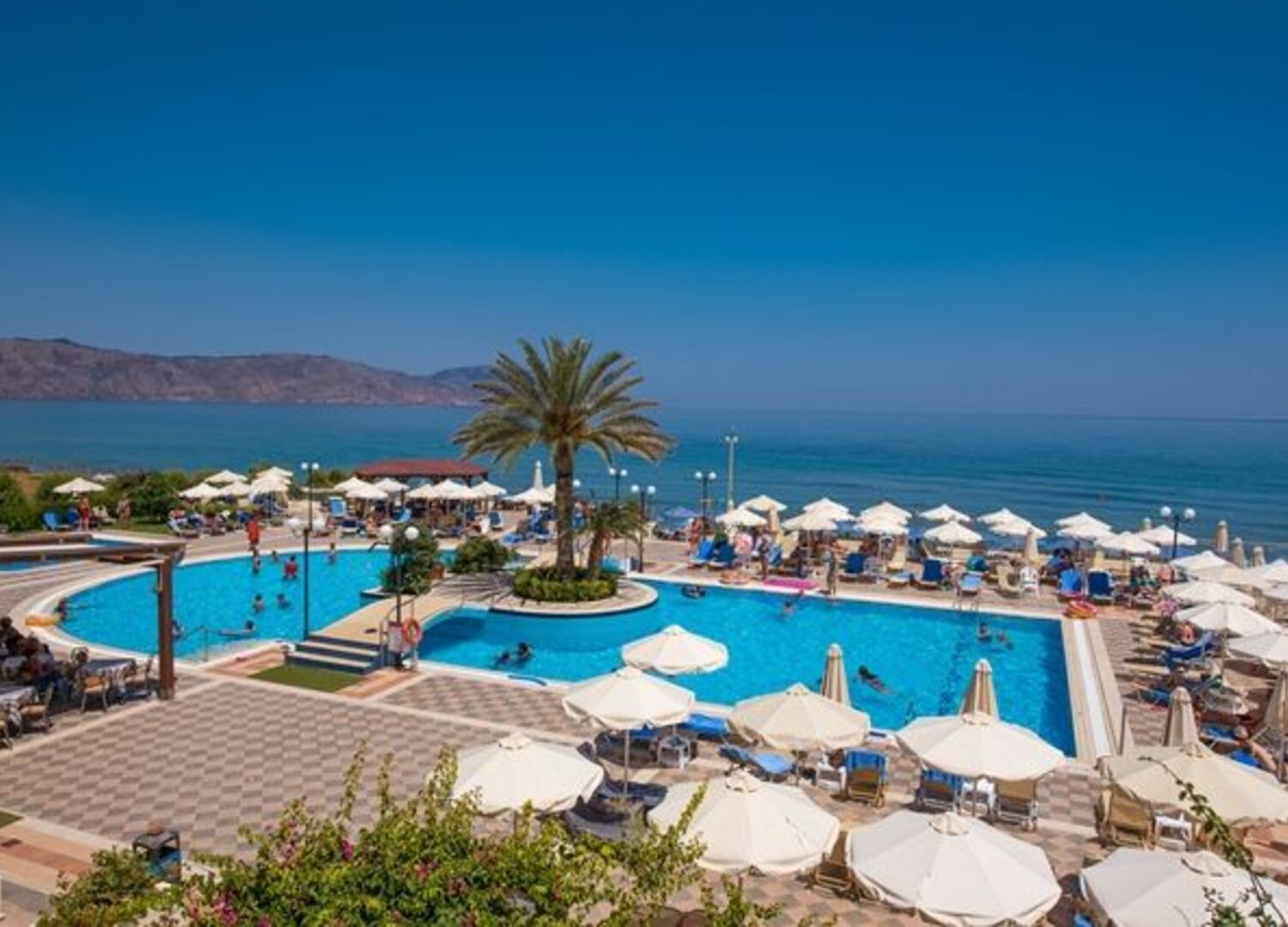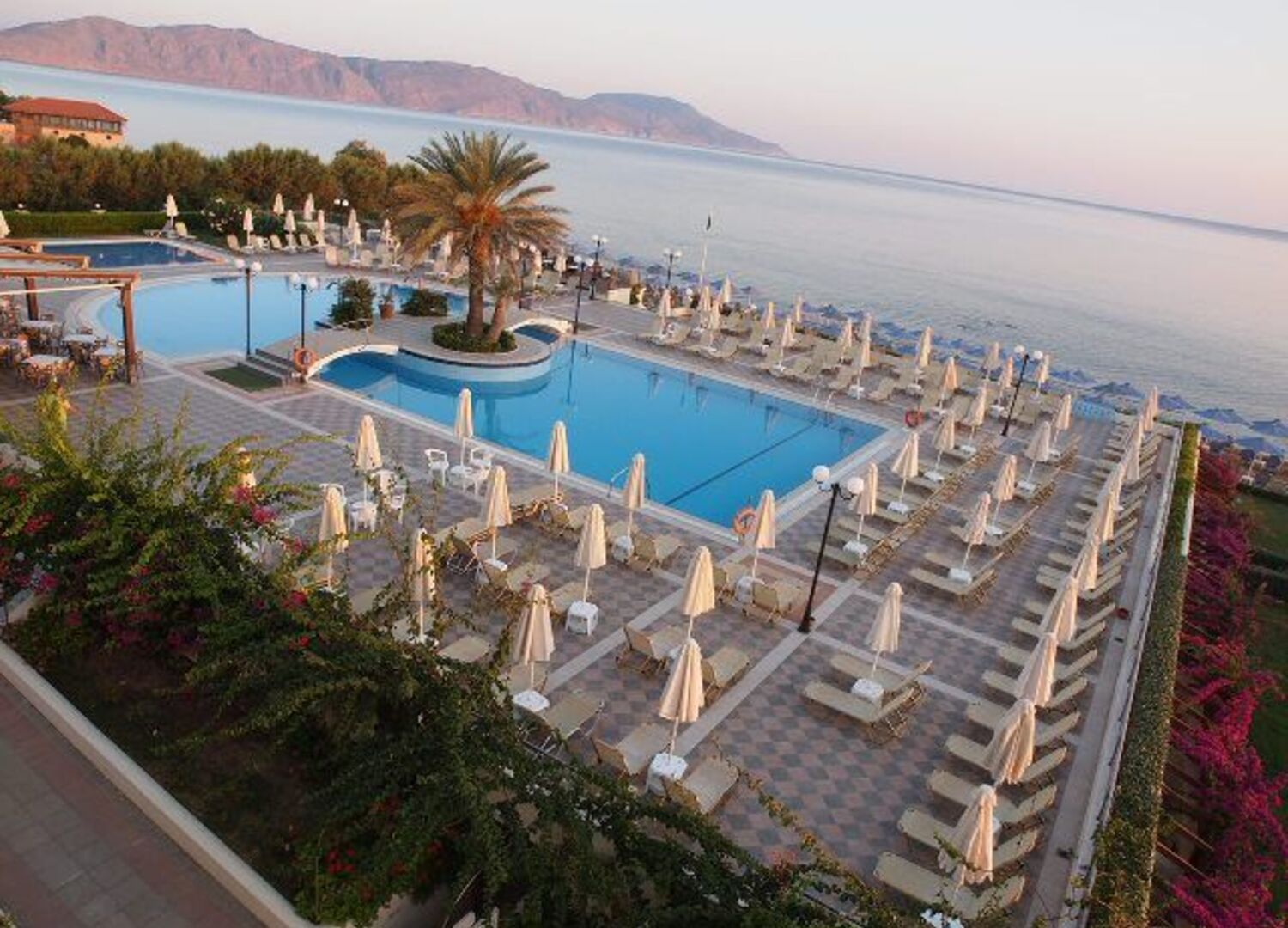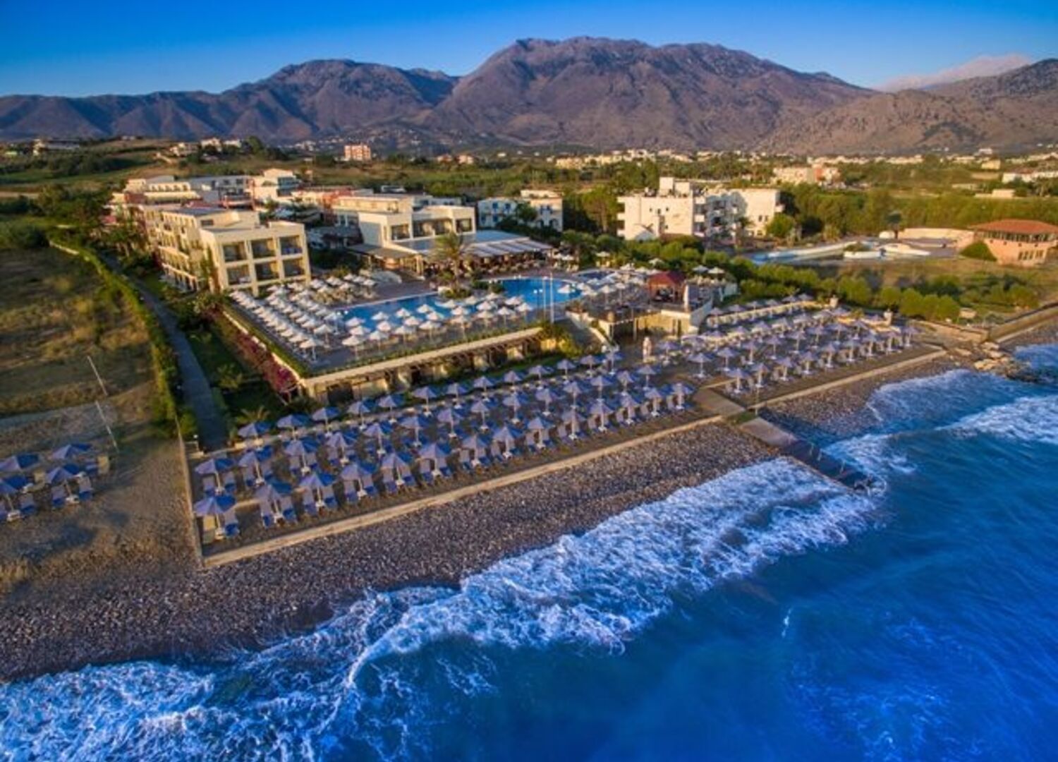 A 2004 built hotel complex on huge site, A’ category (4*), situated on the beach of Georgioupolis, between the traditional towns of RETHYMNO (15km) and CHANIA (40km), named after the ancient city of HYDRAMIA. In a friendly environment provides easy access to historical monuments, traditional villages and points of natural beauty of the western part of the island. (Samaria’s gorge, Kourna’s lake, Arkadi, Elafonissi, Argyroupoli’s springs, etc) The complex looks like a cosmopolitan village with pleasant walkways and gardens. The hotel offers excellent hospitality in pleasant surroundings and is good for any age group.