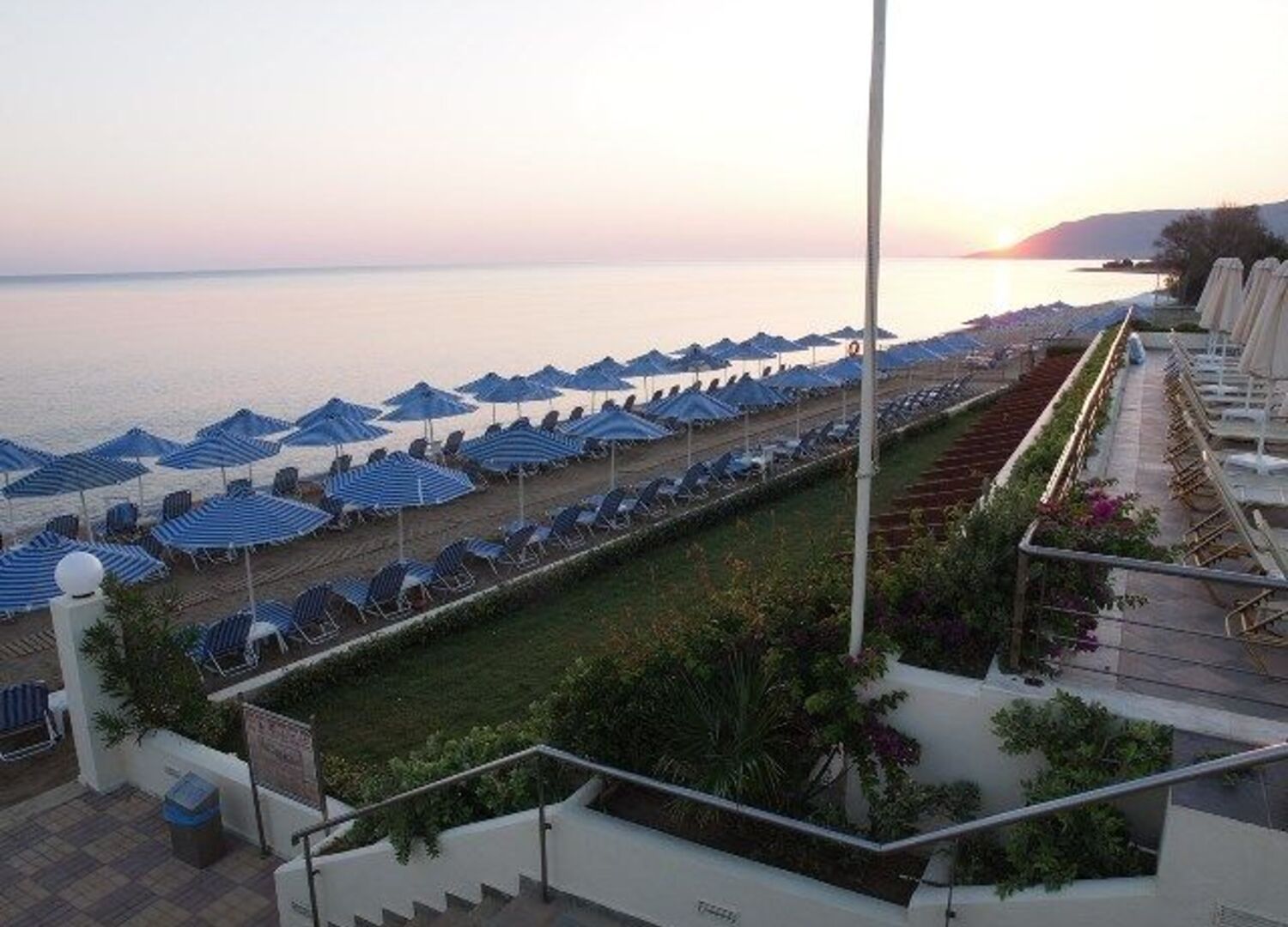 Beach. Well organized with umbrellas and sun-beds. Pebbles and Sand beach and shallow clean waters for easy access.