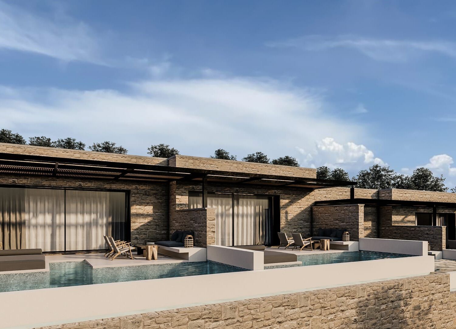 All nine suites are spacious combining earthy and natural materials with modern design and uncompromising comfort. All attractively appointed to create a distinctive and inspiring environment of authentic luxury and heartfelt hospitality in the Peloponnese, Greece, featuring private terraces, infinity pools and incredible vistas.