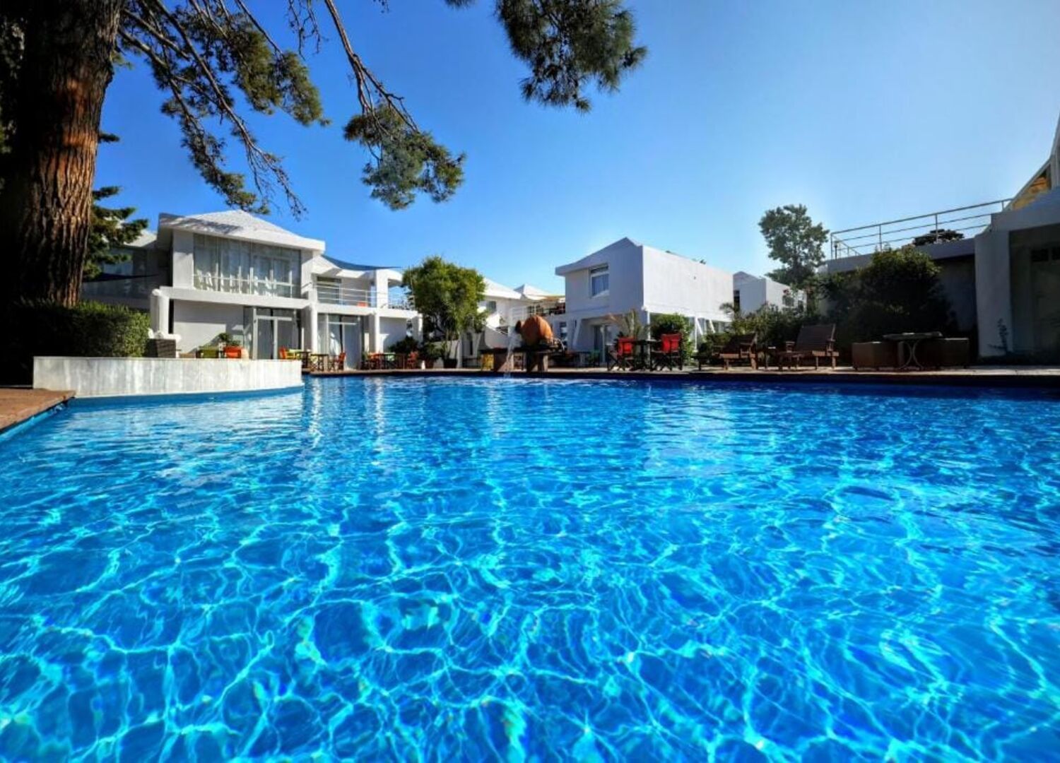 A green garden of Eden where particular attention has been placed to preserve every tree possible, during building the complex, which has created a tranquil haven for many birds and squirrels.