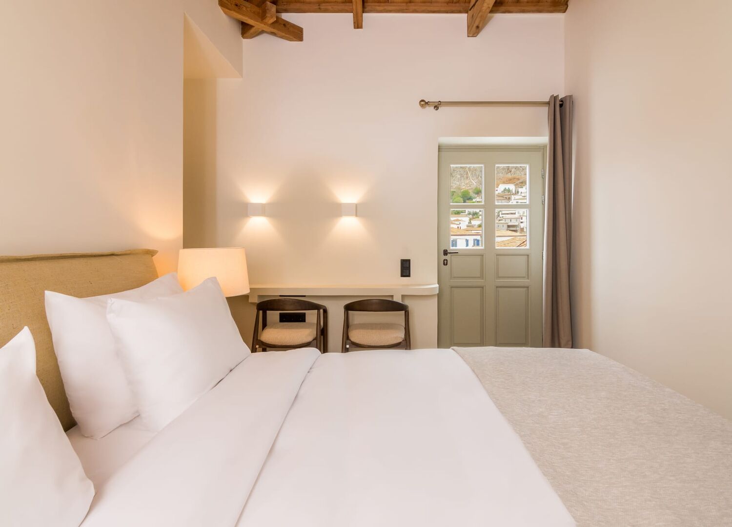 Our reception, attended to from dawn till dusk, ensures your every need is met with attentive care. Each of our meticulously appointed rooms envelop you in an atmosphere of refinement and relaxation. Sink into the embrace of our luxury Coco-Mat mattresses adorned with sumptuous linens and pillows, promising a restful night's sleep. Refresh yourself in elegantly appointed bathrooms complete with invigorating showers and premium bath products from the exclusive OGIGIS collection.