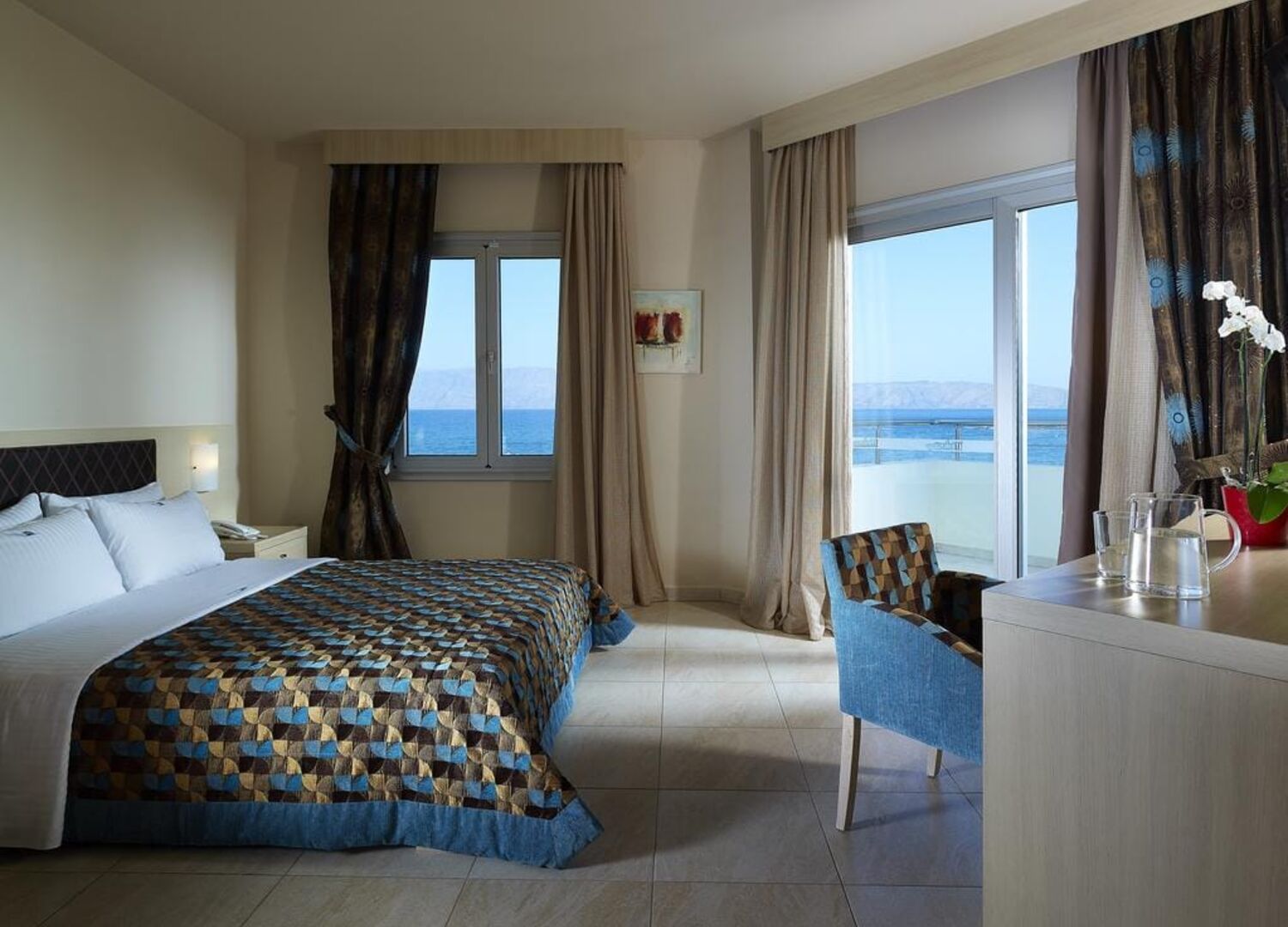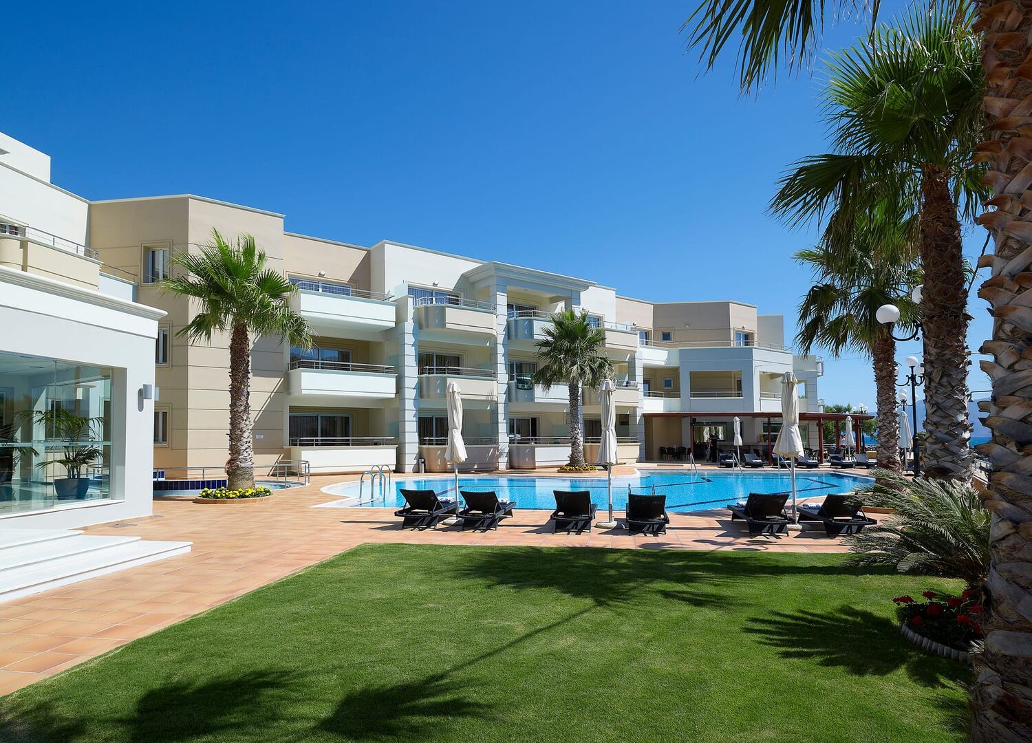The hotel offers a unique mixture of comfortable and family-friendly accommodation options with a total number of 45 Suites and Junior Suites, as well as a complete holiday experience accomplished by its modern and luxurious services, free open-air pool, fully equipped fitness and wellness facilities, as well as a Cretan traditional breakfast at our all-day beach bar– all accompanied by an astonishing view of the deep blue Cretan sea!