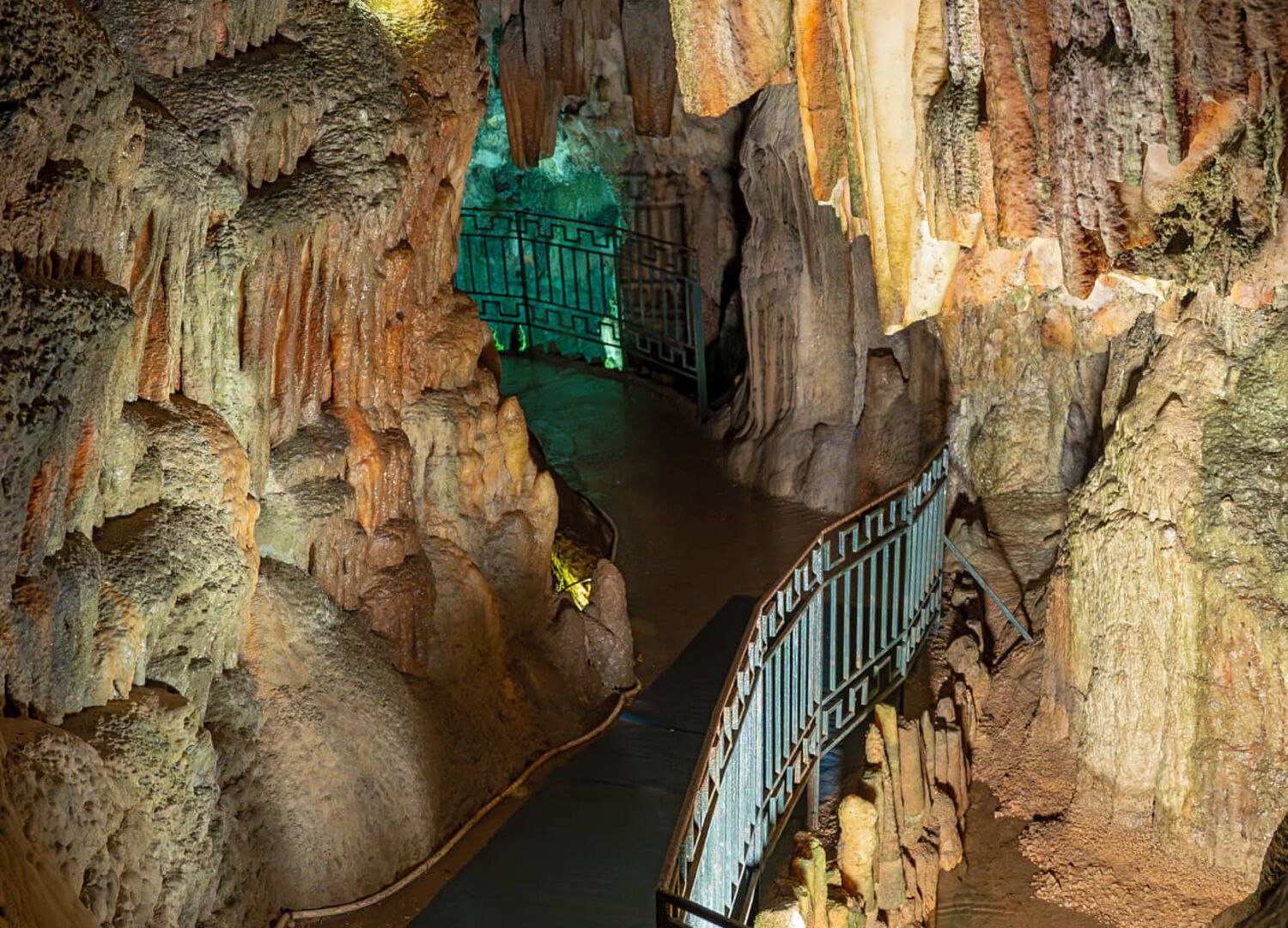 En otro lugar, cerca del pueblo de Poulata se encuentra la cueva de Angalaki, a la que se llega siguiendo un camino desde el monasterio de Themata hasta Karavomilos. Se puede contemplar desde el agujero del techo, o explorarla en una excursión organizada descendiendo con la ayuda de cuerdas y equipo técnico.