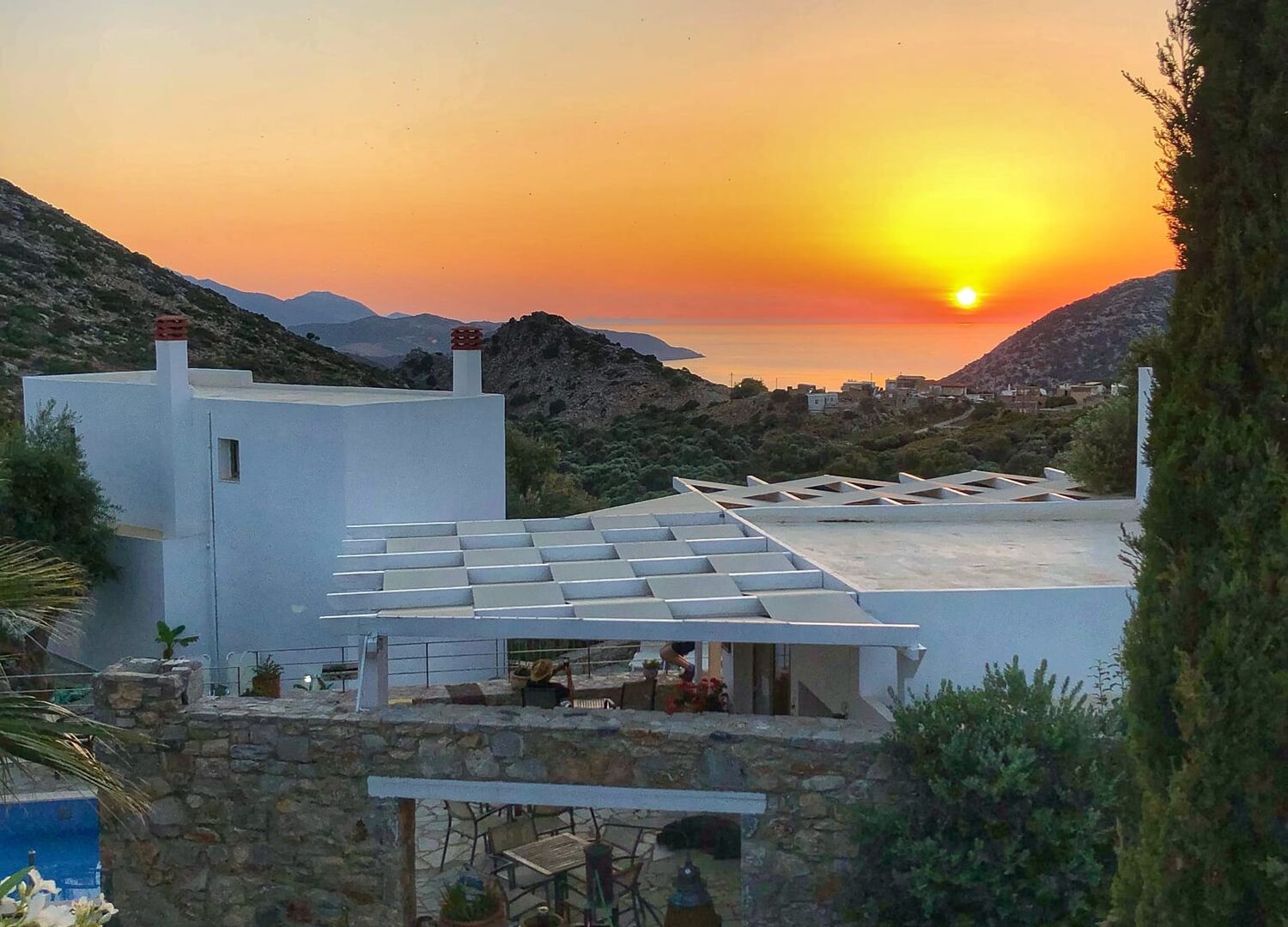 Achlada-Mourtzanakis Residence Eco Villas is an ecotourism lodge located in the medieval village of Achlada in Crete. With over 15 years of experience in ecotourism, activities, and gastronomy, the residence has received numerous certificates and awards. Guests can enjoy panoramic views of Achlada village, the sea, and the famous Cretan Mountains. The stunning sunset adds a romantic touch to the scenery. The address is Achlada Crete - Achlada, Agia Pelagia, Heraklion.