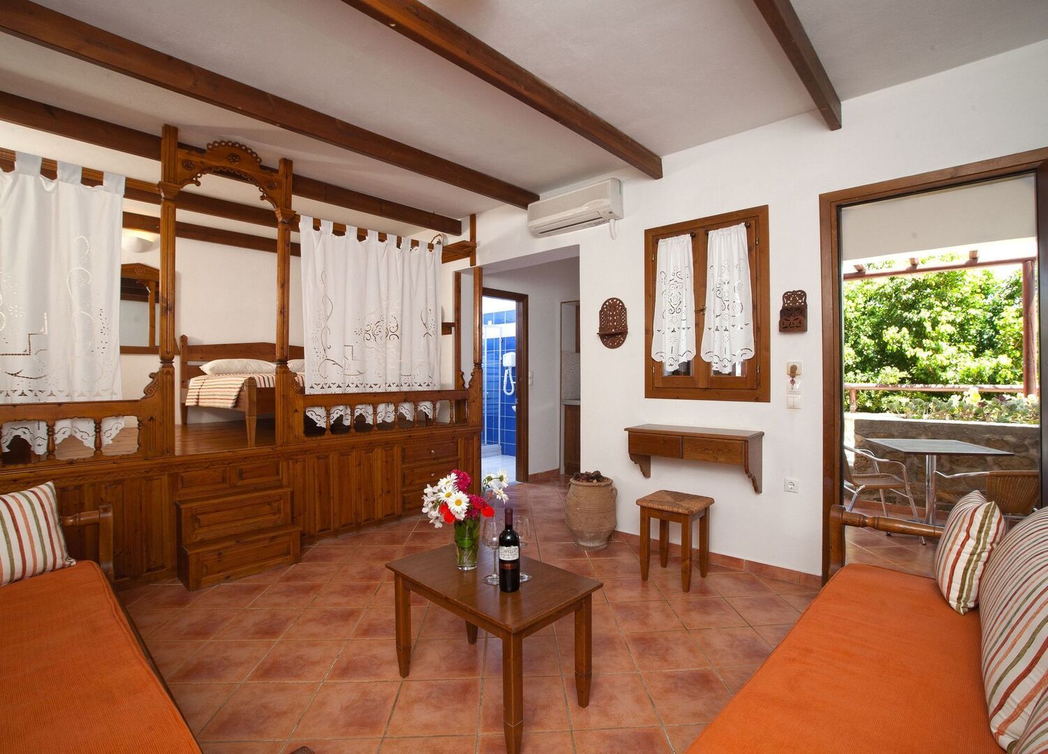 Aegean Village Beachfront Resort spreads over an area of 10000 m2 located just above the secluded beach, Kastelia. A prime location where you can enjoy a memorable sunrise with unobstructed views over the Aegean Sea.